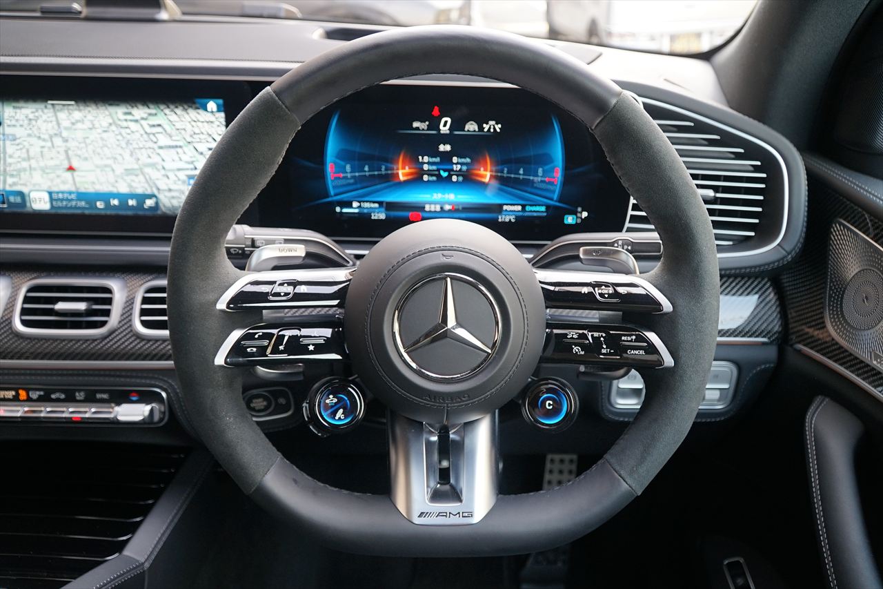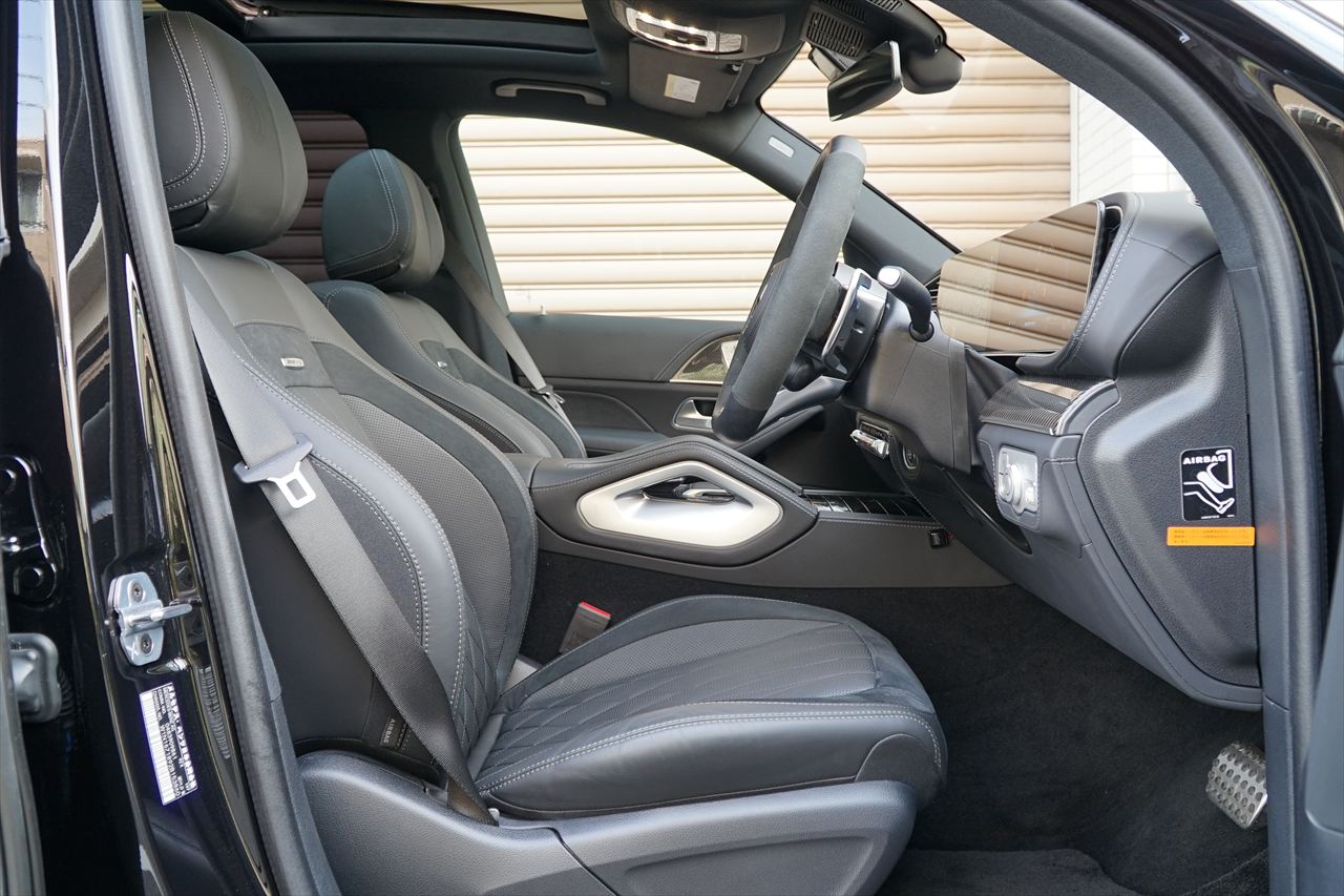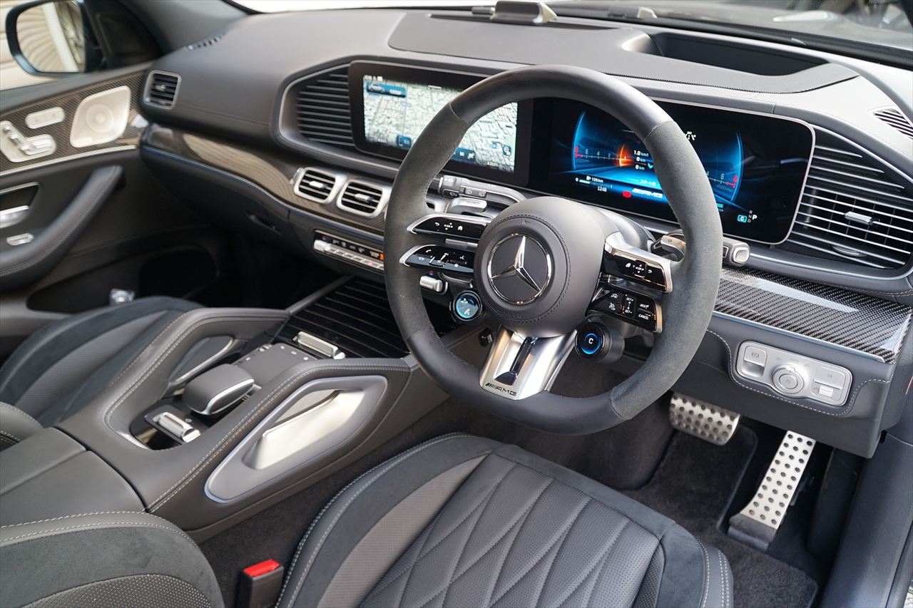 2019年には大規模なフルモデルチェンジを行い、より一層ラグジュアリーさが増した新型「GLEクラス」。さらに2023年の11月に大幅なマイナーチェンジが実施され、エクステリアのブラッシュアップと使い勝手の向上が施された後期モデルの「GLE63S 4MATIC+」が入庫致しました。後期モデルではヘッドライトとテールレンズの意匠変更、新デザインのボンネットエンブレム、静電容量式センサーを備えた新デザインステアリングへの変更、Burmesterサラウンドサウンドシステムの標準装備など多くの変更を受け、さらに快適に、高級感の増したモデルです。搭載されるエンジンはV型 4.0Lツインターボで最高出力612馬力、最大トルク86.7Kgmを発生。俊敏でスムーズな走行性能を実現する「AMG4MATIC+」との組み合わせで無駄なく路面にパワーを伝えます。今回入庫したGLE63Sは、高級感溢れる上品なメタリックカラーの「オブシディアンブラック」でインテリアにはオプションで本革ブラックナッパレザーを装備し、ラグジュアリーかつ硬派な印象です。さらにAMGデザインパッケージプラスも装備しておりますのでインテリアの雰囲気を一段と向上させる「AMGインテリアカーボンパッケージ」と「エクステンデッドインテリアトリム」や、エクステリアをブラックで統一できる「AMGナイトパッケージ」を採用した1台となっております。走行距離5,300kmでエクステリア&インテリアのコンディションも抜群です。2028年5月まで新車保証もたっぷり残っているお車となっておりますのでご安心してご検討ください。お問い合わせが殺到すると思われますのでお早目のご検討をよろしくお願いいたします。