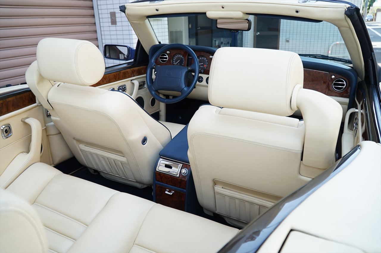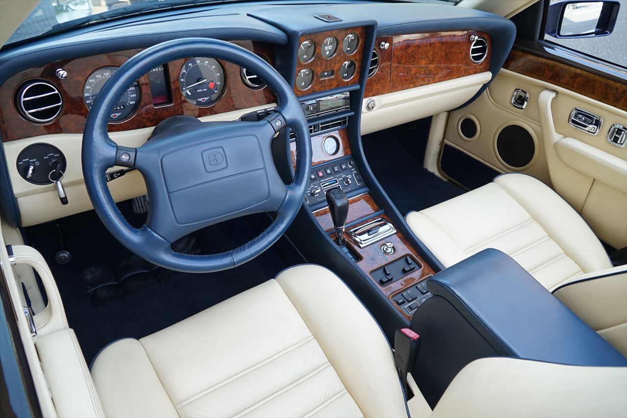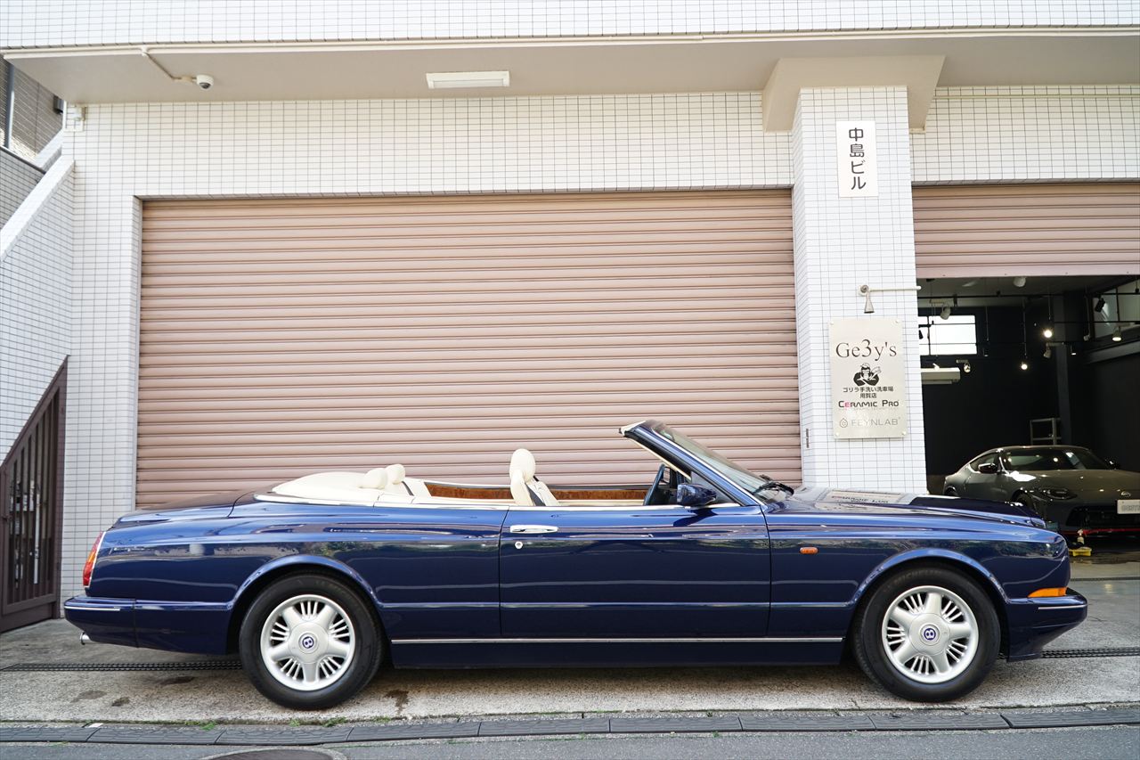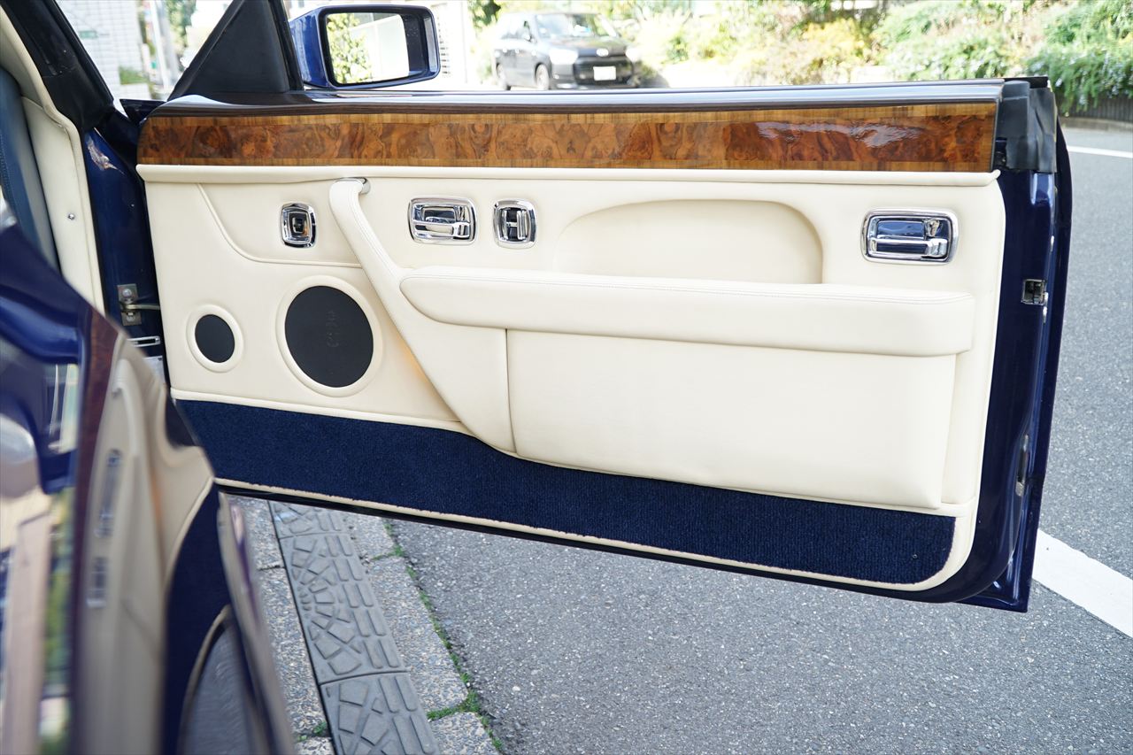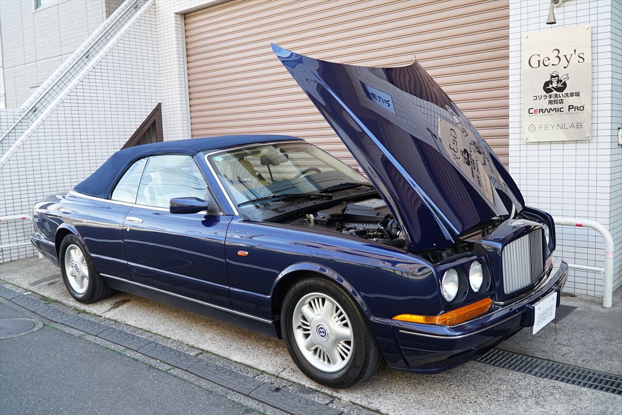 1992年発売のベントレー・ターボRをベースに開発されたクーペ「コンチネンタルR」のオープンモデル、「アズール」が入庫しました。初代アズールは、ボディデザインおよび電動オープントップの開発・製作をイタリアの名門「ピニンファリーナ」が担当。イタリア・トリノのピニンファリーナ工場で幌の製作・装着が行われた後、英国クルーのベントレー工場へ戻され、最終仕上げはロールス・ロイス/ベントレーのコーチビルダー「マリナー・パークウォード」が担当するという、極めて贅沢でコストのかかった生産工程を経たモデルです。ピニンファリーナとマリナー・パークウォード、イタリアとイギリスの名門が共同で手掛けたダブルネームの特別な一台。総生産台数は約1,300台、国内正規ディーラー車はわずか約50台とされる希少車両です。ボディカラーは「ピーコックブルーメタリック」、インテリアはマグノリアハイドのコノリーレザーを採用。ダークブルーとグレーのコンビネーションがシックで気品ある室内空間を演出します。巨匠二社が手掛けた希少な正規ディーラー車。コンディションも抜群の個体です。お探しの方はぜひお問い合わせください。