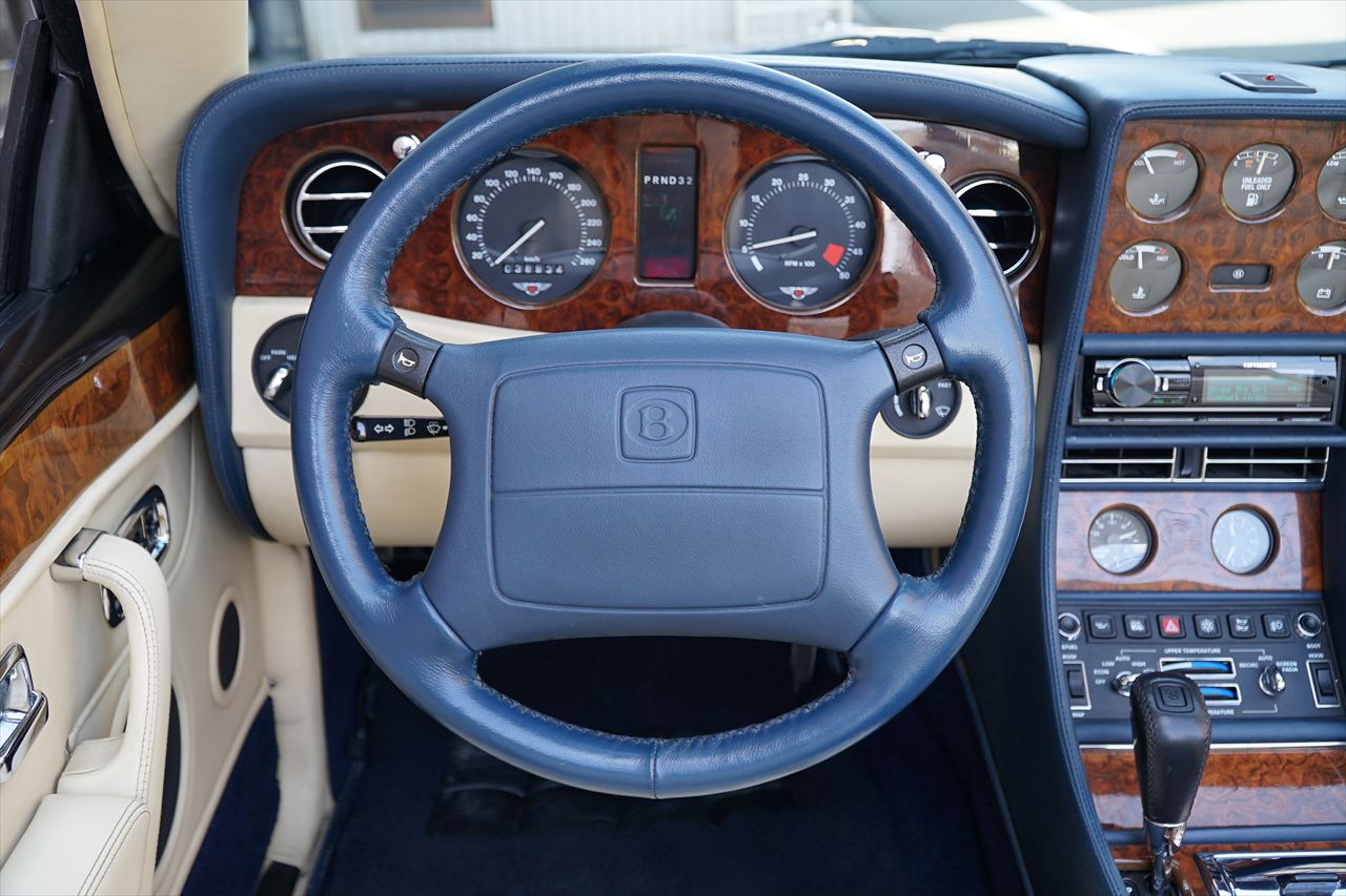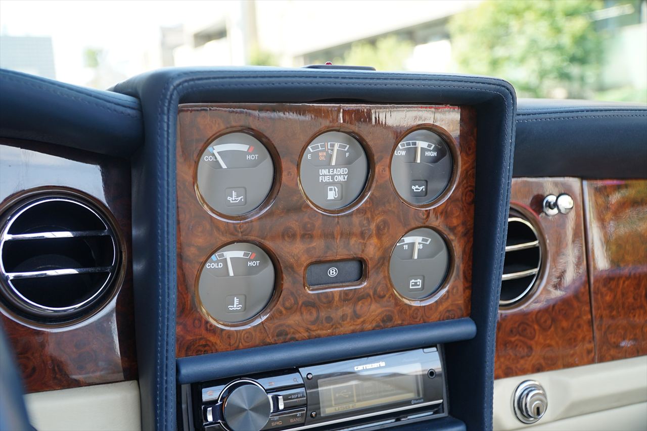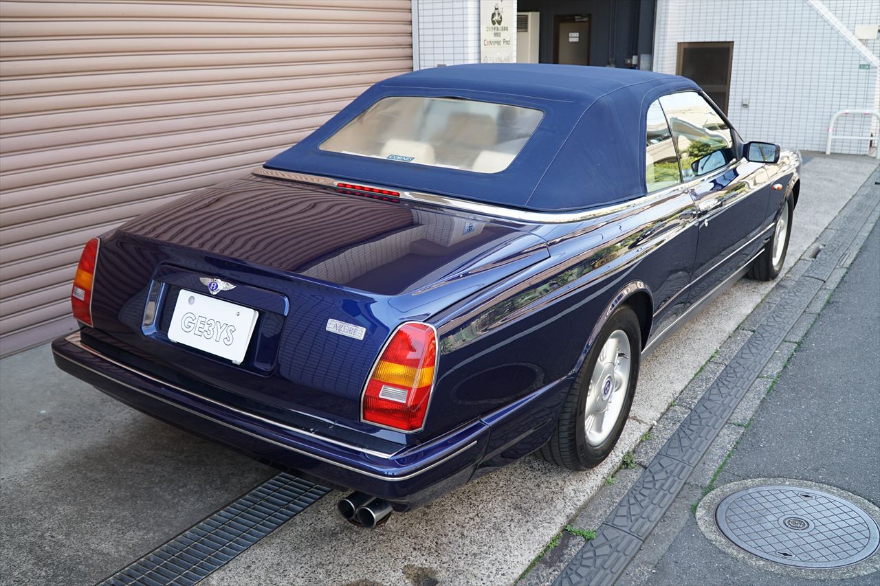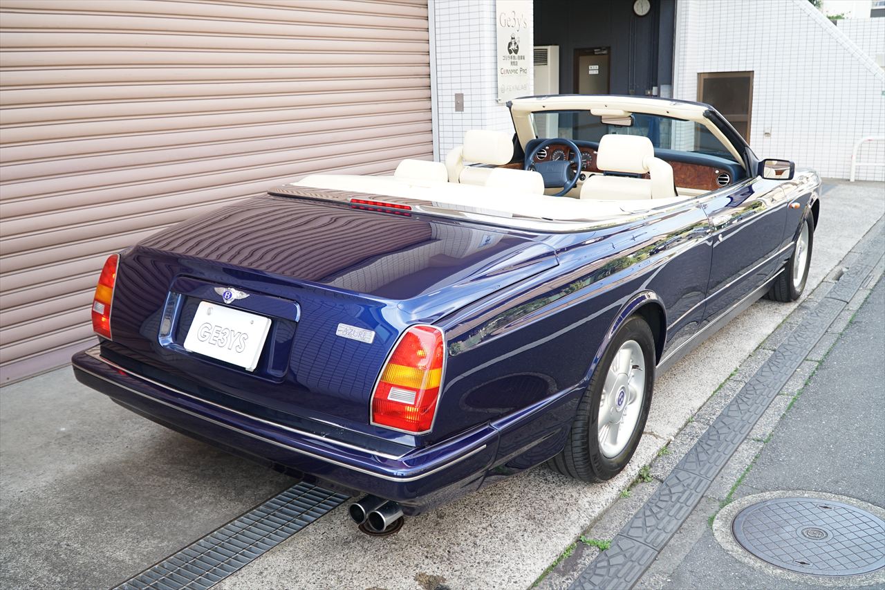 1992年発売のベントレー・ターボRをベースに開発されたクーペ「コンチネンタルR」のオープンモデル、「アズール」が入庫しました。初代アズールは、ボディデザインおよび電動オープントップの開発・製作をイタリアの名門「ピニンファリーナ」が担当。イタリア・トリノのピニンファリーナ工場で幌の製作・装着が行われた後、英国クルーのベントレー工場へ戻され、最終仕上げはロールス・ロイス/ベントレーのコーチビルダー「マリナー・パークウォード」が担当するという、極めて贅沢でコストのかかった生産工程を経たモデルです。ピニンファリーナとマリナー・パークウォード、イタリアとイギリスの名門が共同で手掛けたダブルネームの特別な一台。総生産台数は約1,300台、国内正規ディーラー車はわずか約50台とされる希少車両です。ボディカラーは「ピーコックブルーメタリック」、インテリアはマグノリアハイドのコノリーレザーを採用。ダークブルーとグレーのコンビネーションがシックで気品ある室内空間を演出します。巨匠二社が手掛けた希少な正規ディーラー車。コンディションも抜群の個体です。お探しの方はぜひお問い合わせください。