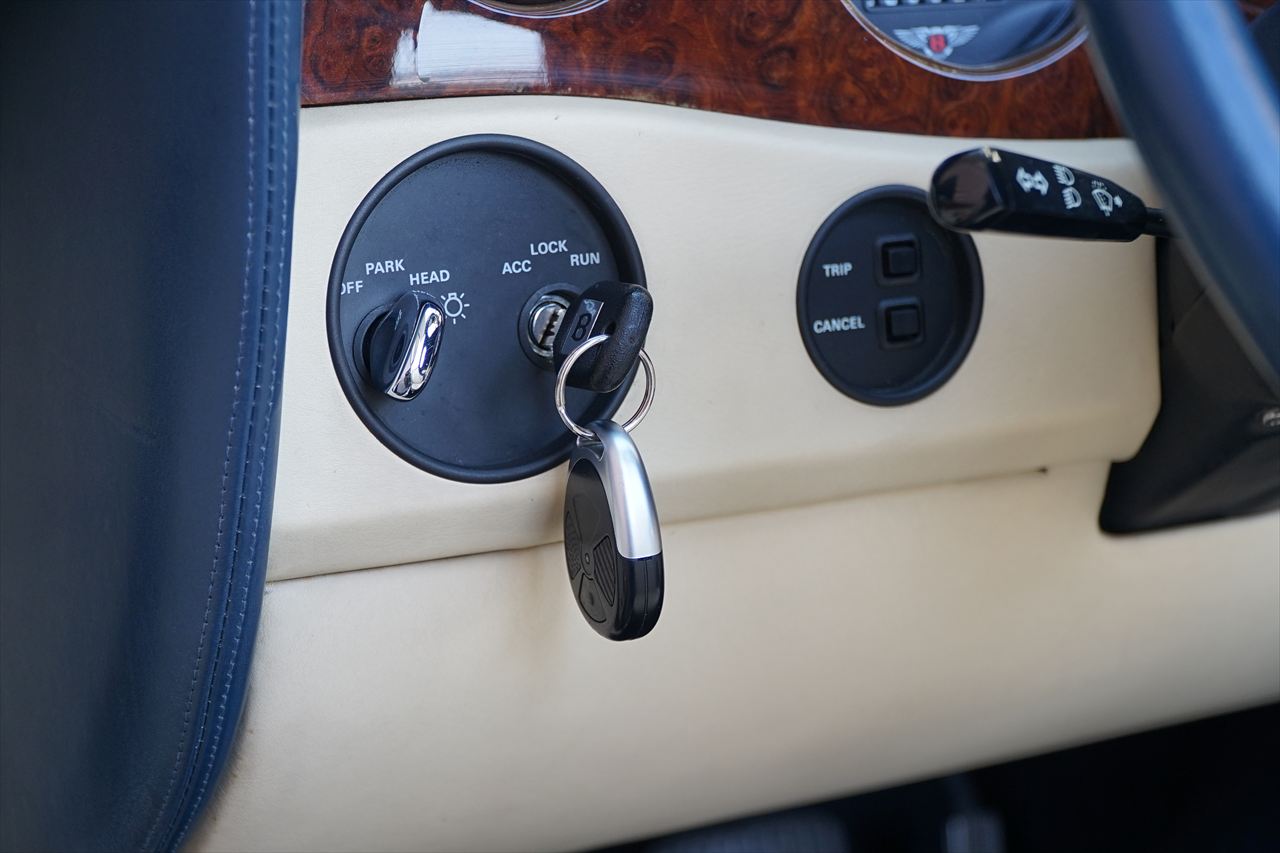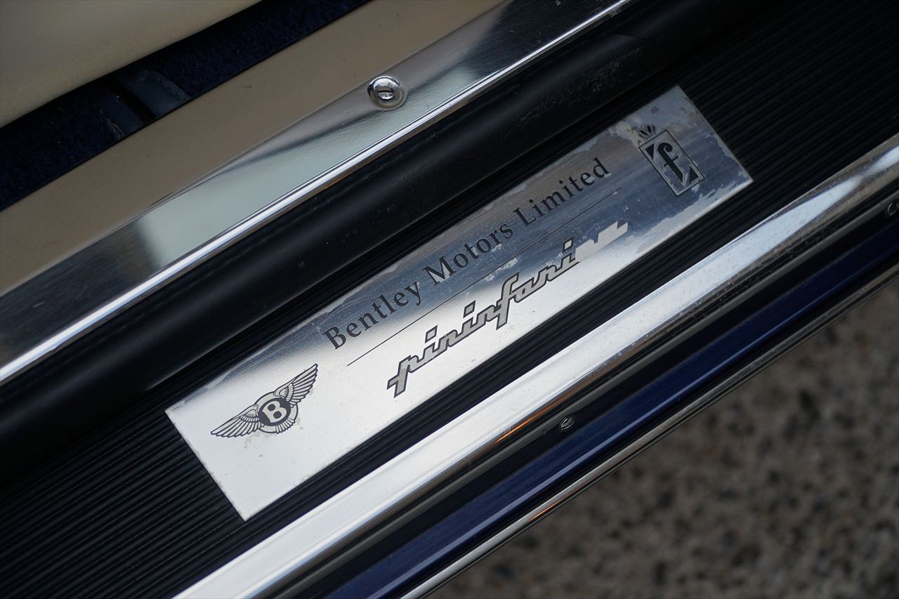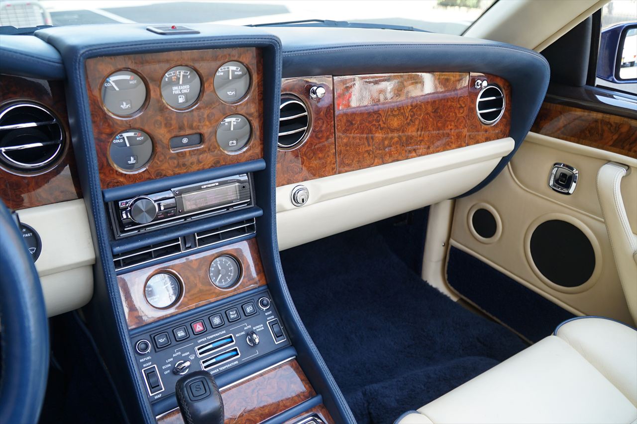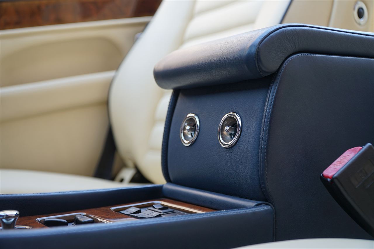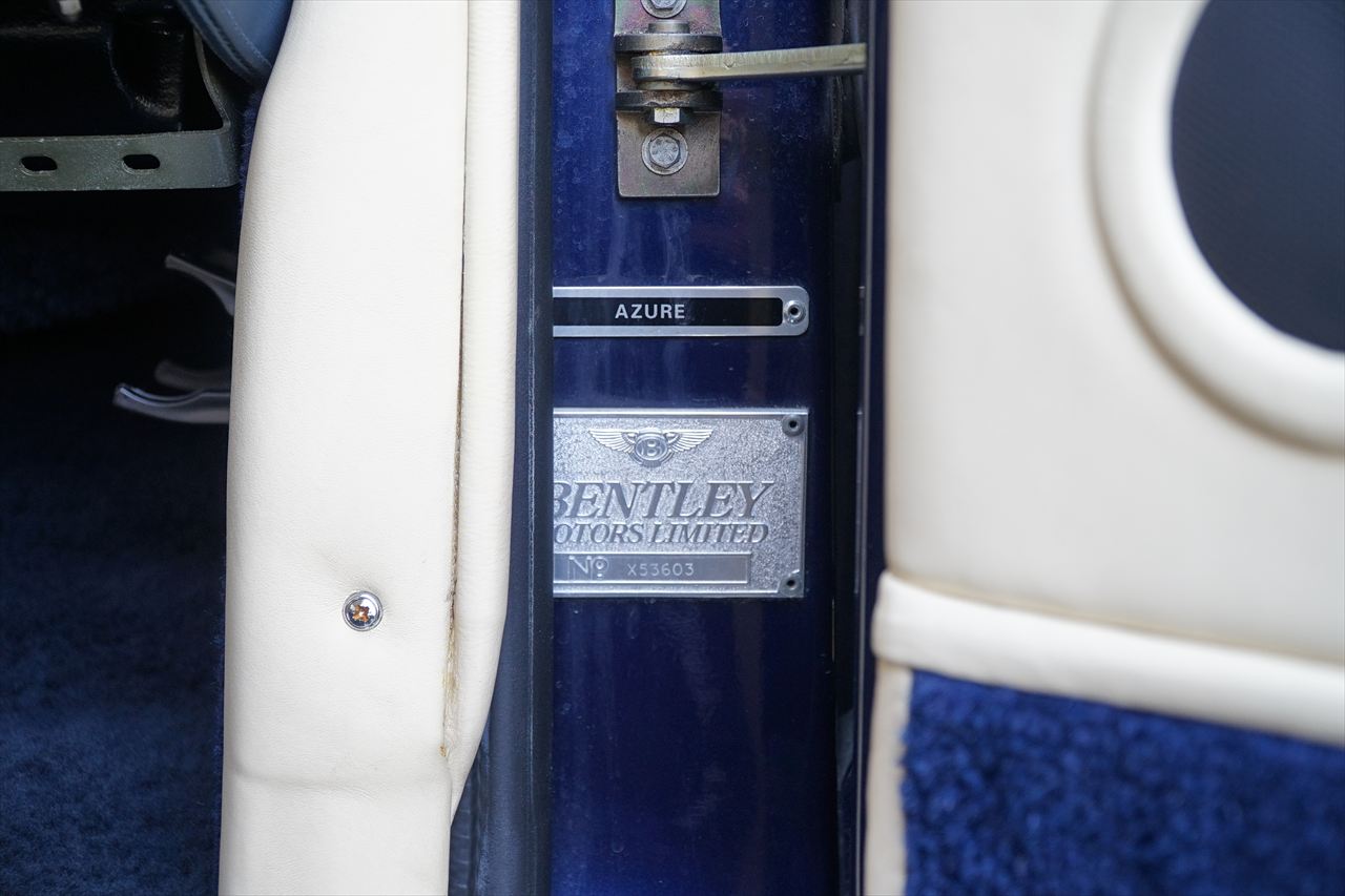 1992年発売のベントレー・ターボRをベースに開発されたクーペ「コンチネンタルR」のオープンモデル、「アズール」が入庫しました。初代アズールは、ボディデザインおよび電動オープントップの開発・製作をイタリアの名門「ピニンファリーナ」が担当。イタリア・トリノのピニンファリーナ工場で幌の製作・装着が行われた後、英国クルーのベントレー工場へ戻され、最終仕上げはロールス・ロイス/ベントレーのコーチビルダー「マリナー・パークウォード」が担当するという、極めて贅沢でコストのかかった生産工程を経たモデルです。ピニンファリーナとマリナー・パークウォード、イタリアとイギリスの名門が共同で手掛けたダブルネームの特別な一台。総生産台数は約1,300台、国内正規ディーラー車はわずか約50台とされる希少車両です。ボディカラーは「ピーコックブルーメタリック」、インテリアはマグノリアハイドのコノリーレザーを採用。ダークブルーとグレーのコンビネーションがシックで気品ある室内空間を演出します。巨匠二社が手掛けた希少な正規ディーラー車。コンディションも抜群の個体です。お探しの方はぜひお問い合わせください。