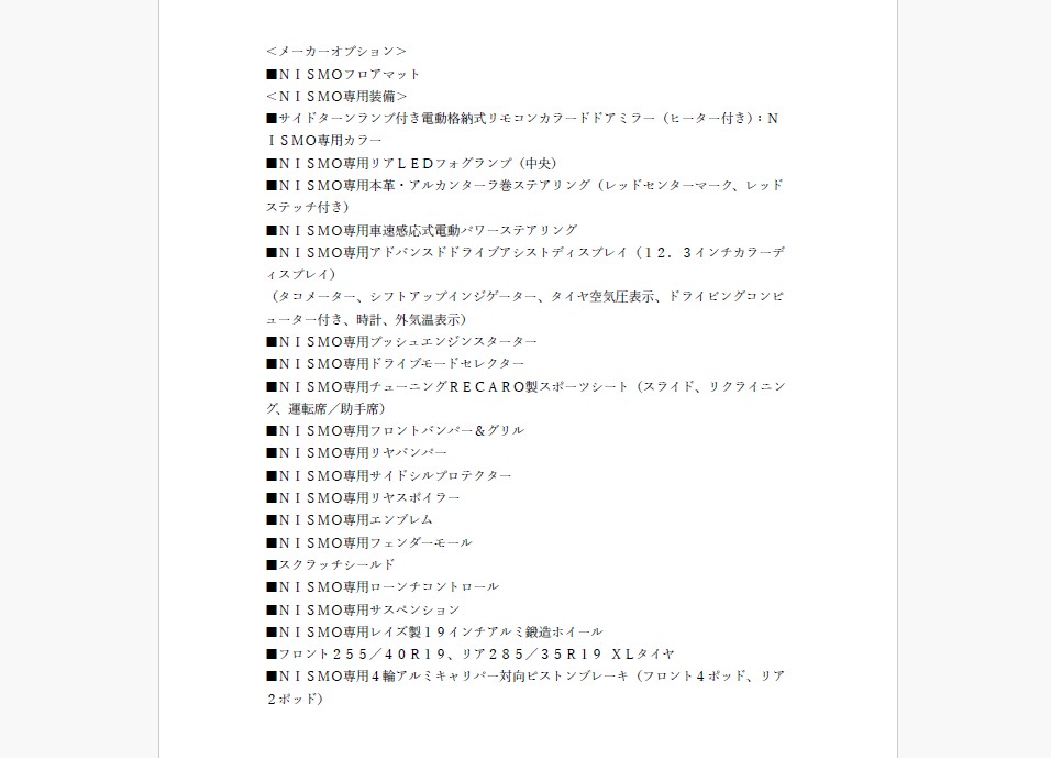 ■数々の専用装備を装着したハイパフォーマンスモデル。走りの日産に乗るなら、やはりNISMOをお勧めいたします。