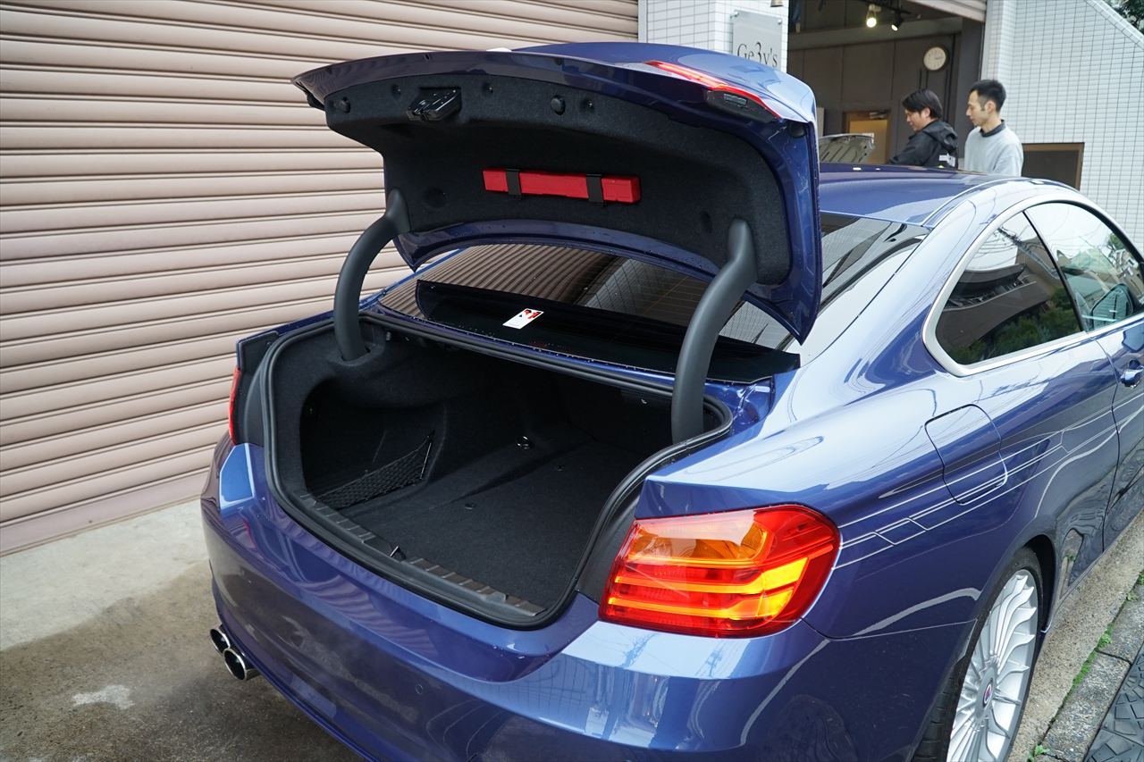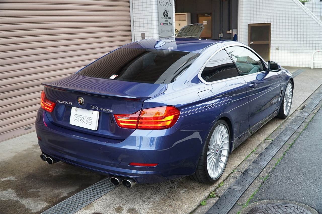 アルピナが誇る上質さと圧倒的パフォーマンスを高次元で融合させたラグジュアリークーペ、「アルピナ B4 ビターボ クーペ」が入庫致しました!!ベースとなるBMW 4シリーズクーペの流麗で伸びやかなボディラインを活かしながら、アルピナならではの専用チューニングが随所に施された1台で御座います!!アルピナ専用フロントスポイラーやリアスポイラー、20インチのアルピナクラシックホイールなどが装着されることで、エレガントさの中に確かなスポーツマインドを感じさせる仕上がりとなっております。デザインだけではなく、搭載されるエンジンは3.0L直列6気筒ツインターボエンジン。最高出力410馬力、最大トルク600Nmを発揮し、0-100km/h加速はわずか4.2秒、最高速度は305km/hという、ラグジュアリークーペの枠を超えた圧巻のパフォーマンスを誇ります。インテリアには、アルピナ専用のメーターパネルやステアリングなど、各部のディテールに至るまで特別な仕立てが施されており、BMWをベースとしながらも明確に別格であることを感じさせます。今回ご案内の車両は、有償カラーである「アルピナブルー」を纏った1台で御座います。アルピナを象徴する特別なボディカラーが、その美しいプロポーションをより一層引き立てております。さらに、パークディスタンスコントロールやリヤビューカメラといった安全装備に加え、アクラボビッチ製専用マフラー、カーヴェー(KW)車高調を装着しておりますので、見た目のスタイリッシュさはもちろん、走行性能にも磨きがかけられております。エレガントなスタイリング、シルキーかつ力強い直列6気筒ツインターボ、そしてアルピナならではの上質な乗り味を兼ね備えた、大変魅力の大きい1台で御座います。ぜひこの機会にご検討くださいませ!!お問合せお待ちしております。
