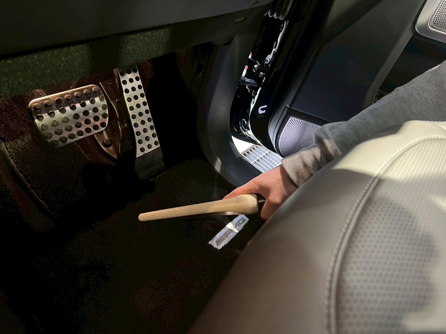 運転席と助手席の掃除機、フロントガラスの内窓とダッシュボードの拭き上げ