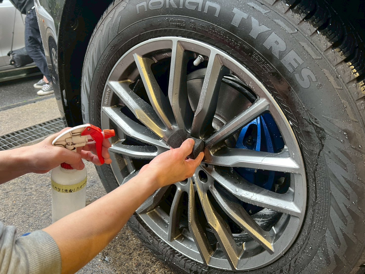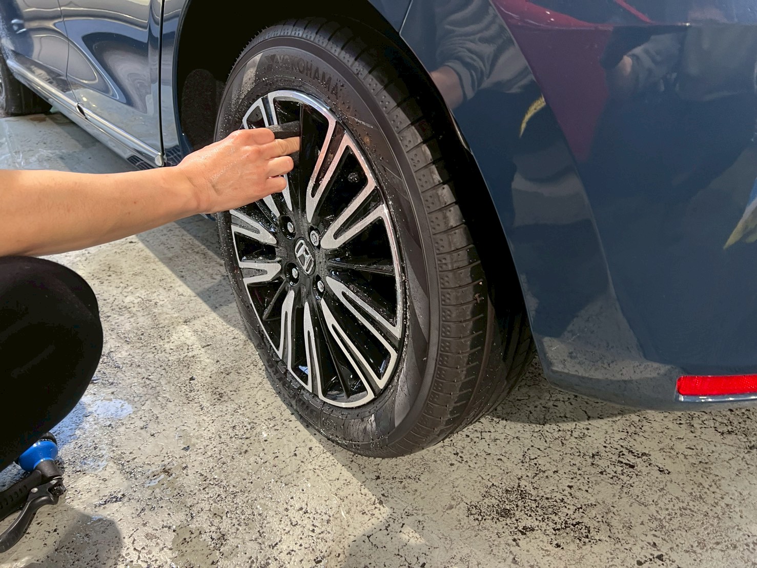ドアを開けたところ、ホイール(表面のみ)の拭き上げも行います。