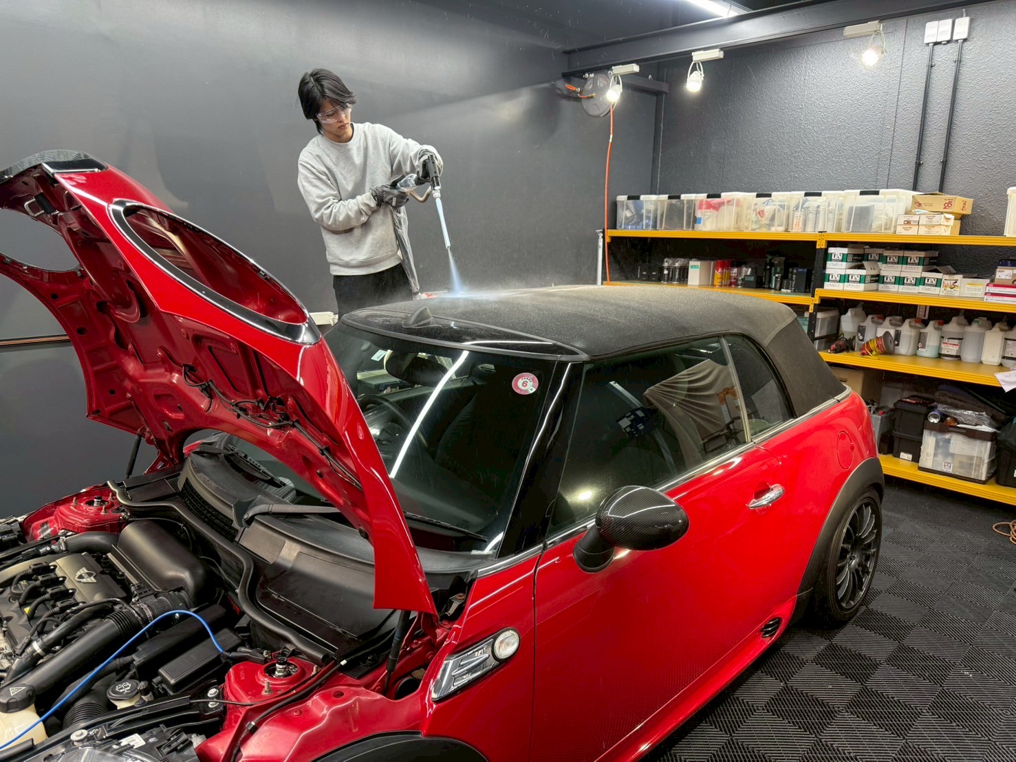 A. 部位や汚れ具合によりますが、ホイール片側なら30分程度、エンジンルーム全体なら1〜2時間が目安です(当店の目安)