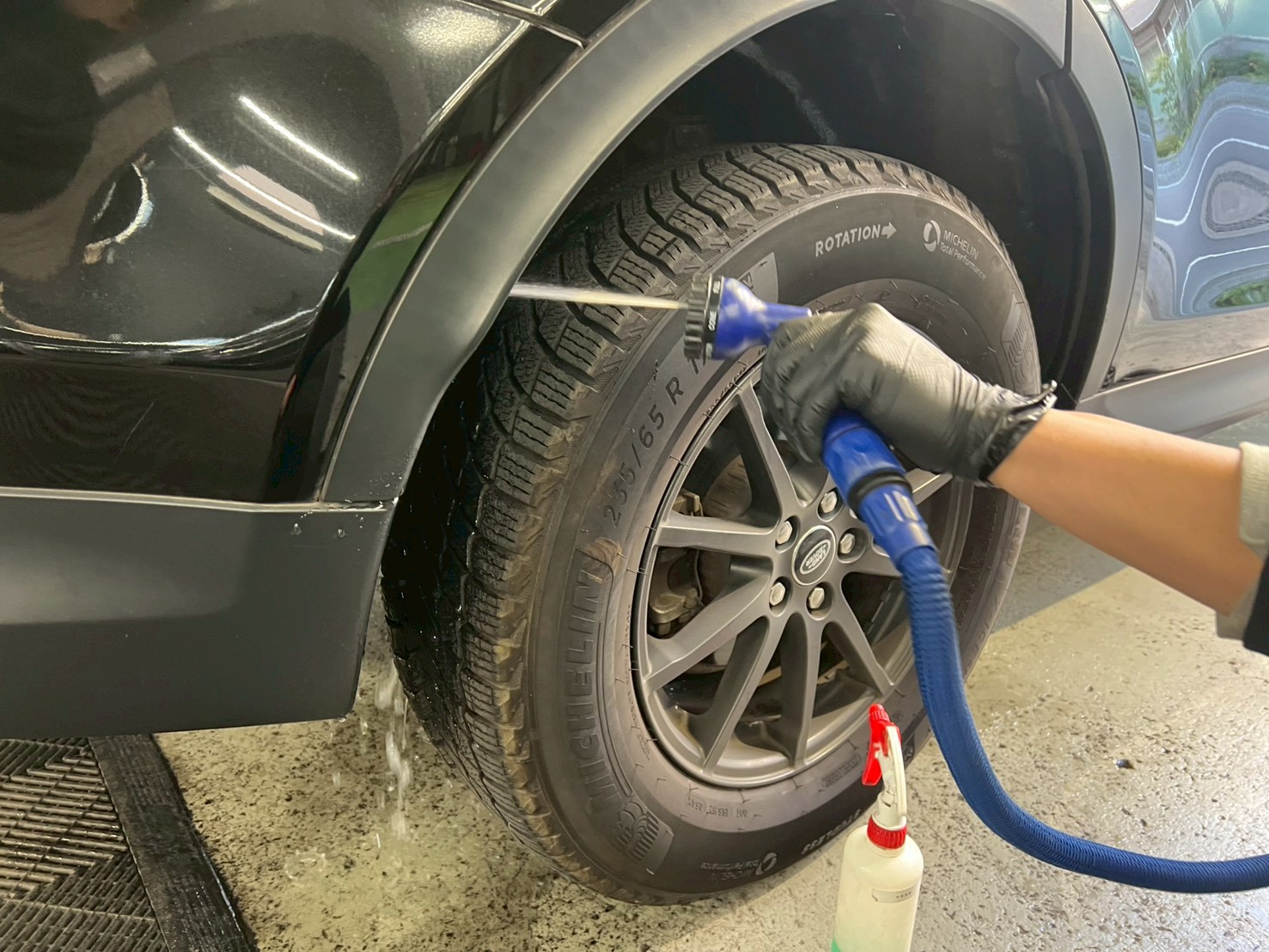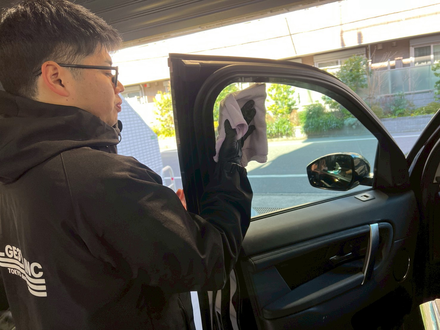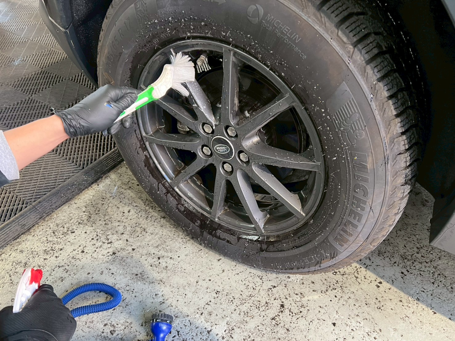 ドアを開けたところ、ホイール(表面のみ)の拭き上げも行います。