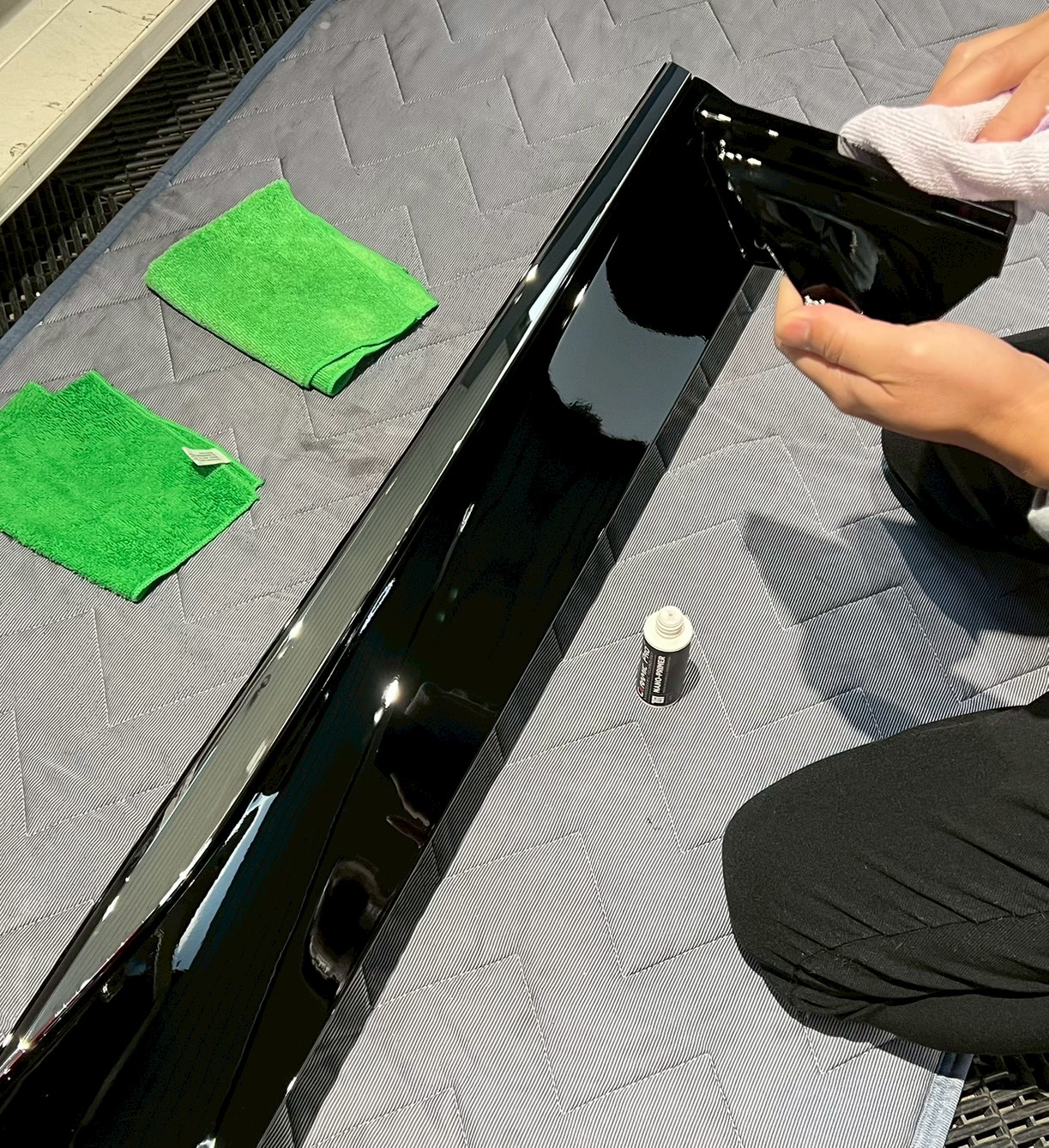 今回は、新品に交換されるスライドドアサイドパネルとエンドカバーを、パーツ持ち込みにて、セラミックプロイオン2層部分コーティングを施工させていただきました♪