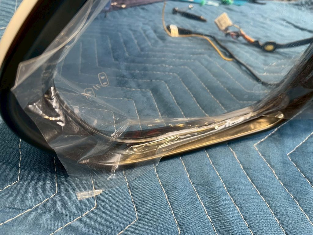 ミラーは左右をバラシてレンズを交換し配線を通していきます。