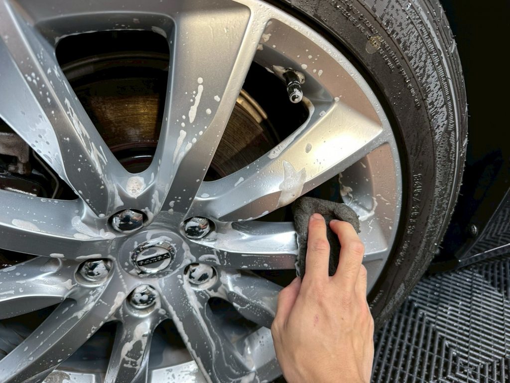 脱脂、仕上げ作業(ドアの内側や隙間の磨き粉の除去、窓清掃、ホイール仕上げ、室内清掃)