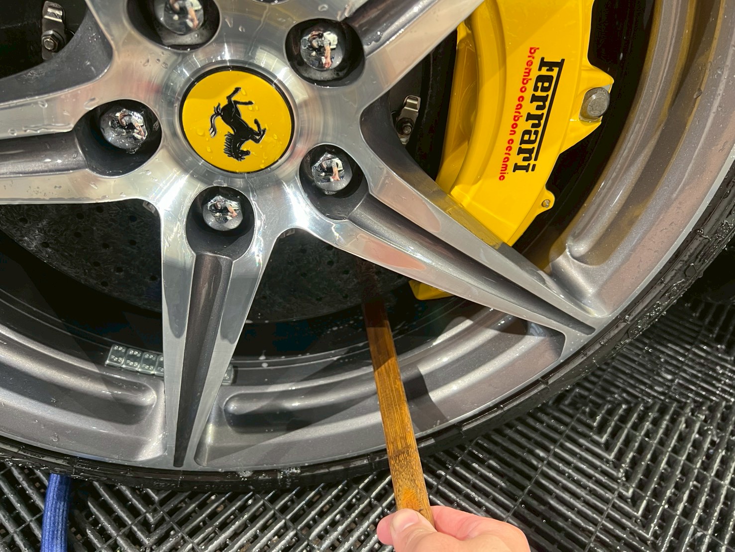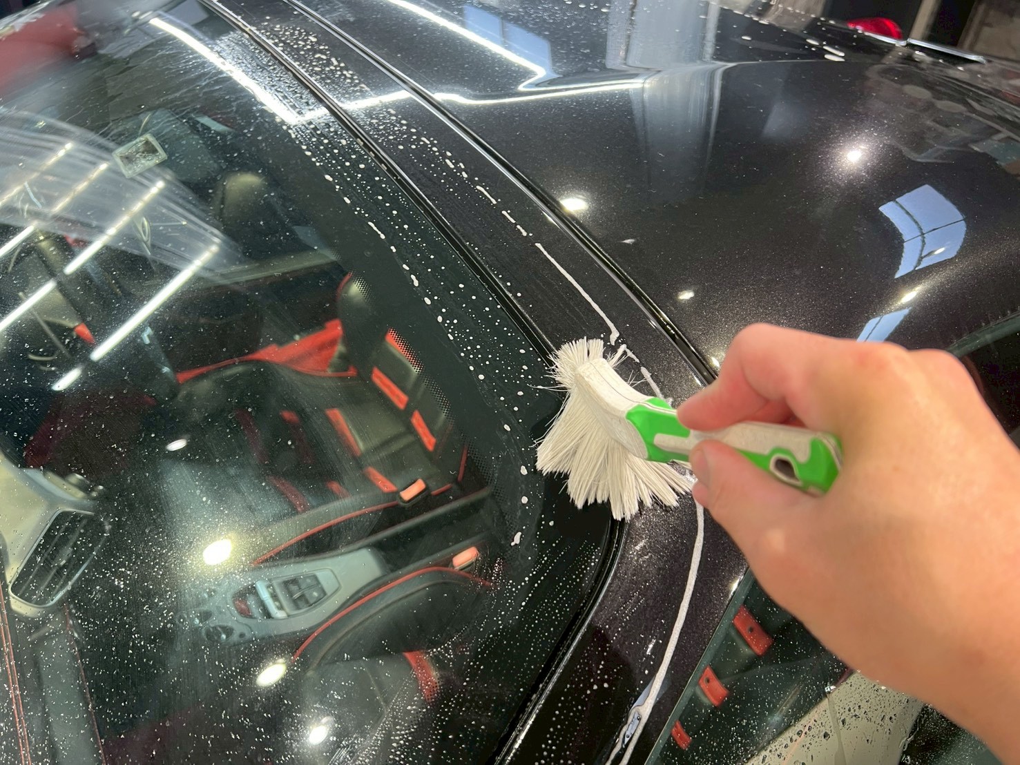 脱脂、仕上げ作業(隙間の磨き粉の除去、窓清掃、ホイール仕上げ、室内清掃)