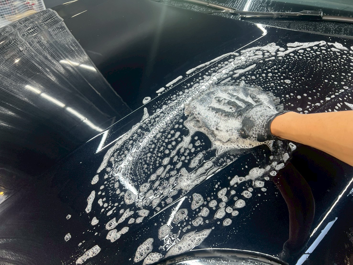 脱脂、仕上げ作業(ドアの内側や隙間の磨き粉の除去、窓清掃、ホイール仕上げ、室内清掃)