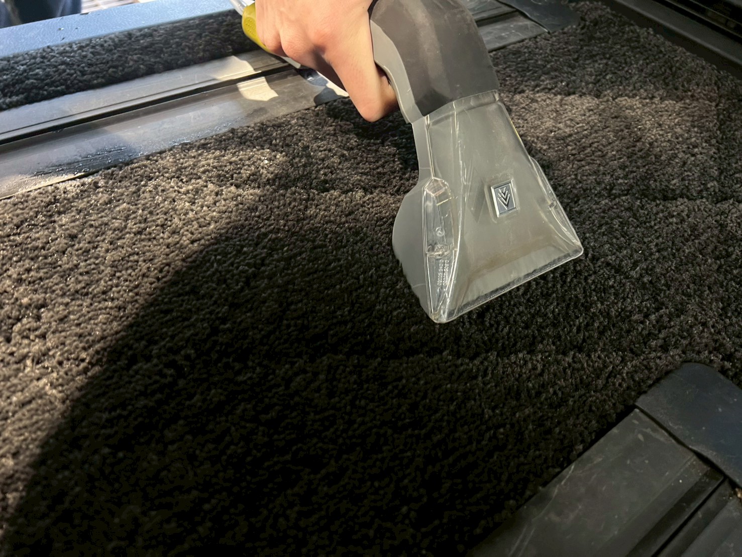 すぐに吸引ノズルで水と一緒に汚れを吸い取り、必要に応じて数回繰り返します。
