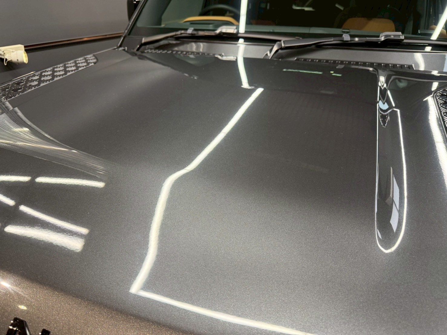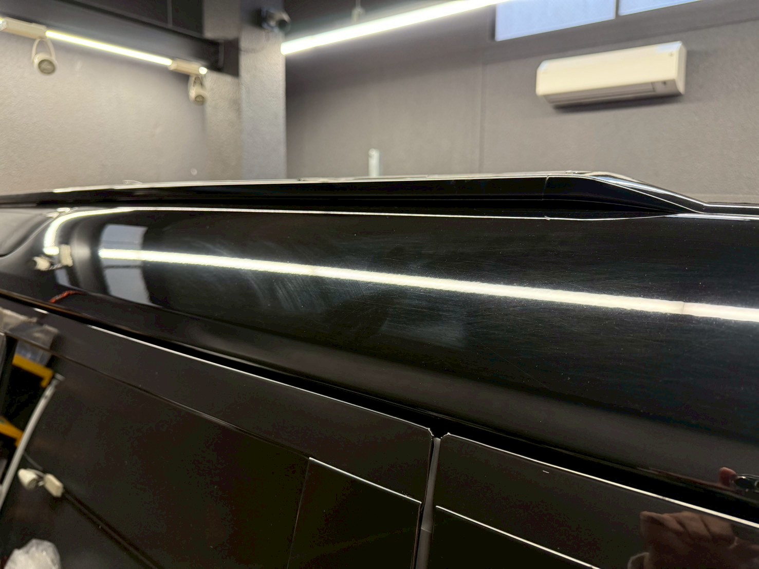脱脂、仕上げ作業(ドアの内側や隙間の磨き粉の除去、窓清掃、ホイール仕上げ、室内清掃)