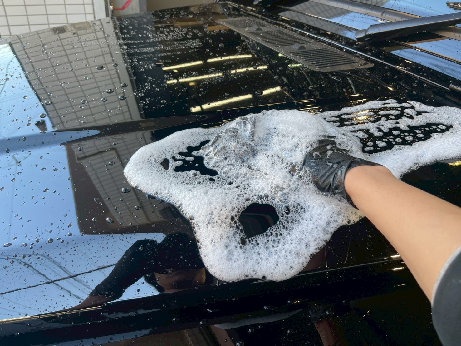 まずは、ボディ洗車、ドアヒンジのクリーニング、ケミカル剤によるクリーニングをしていきます。