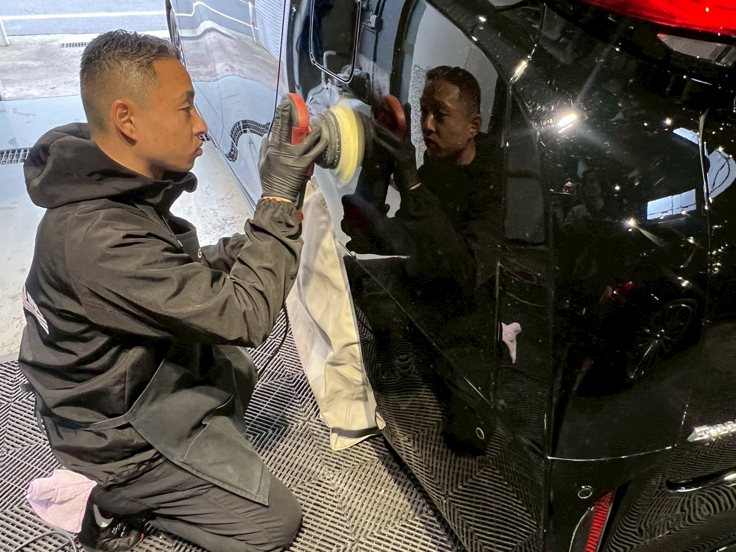 今回のトヨタ ヴェルファイアは、お客様が気にされていた傷を、磨きで落としていく施工になります!