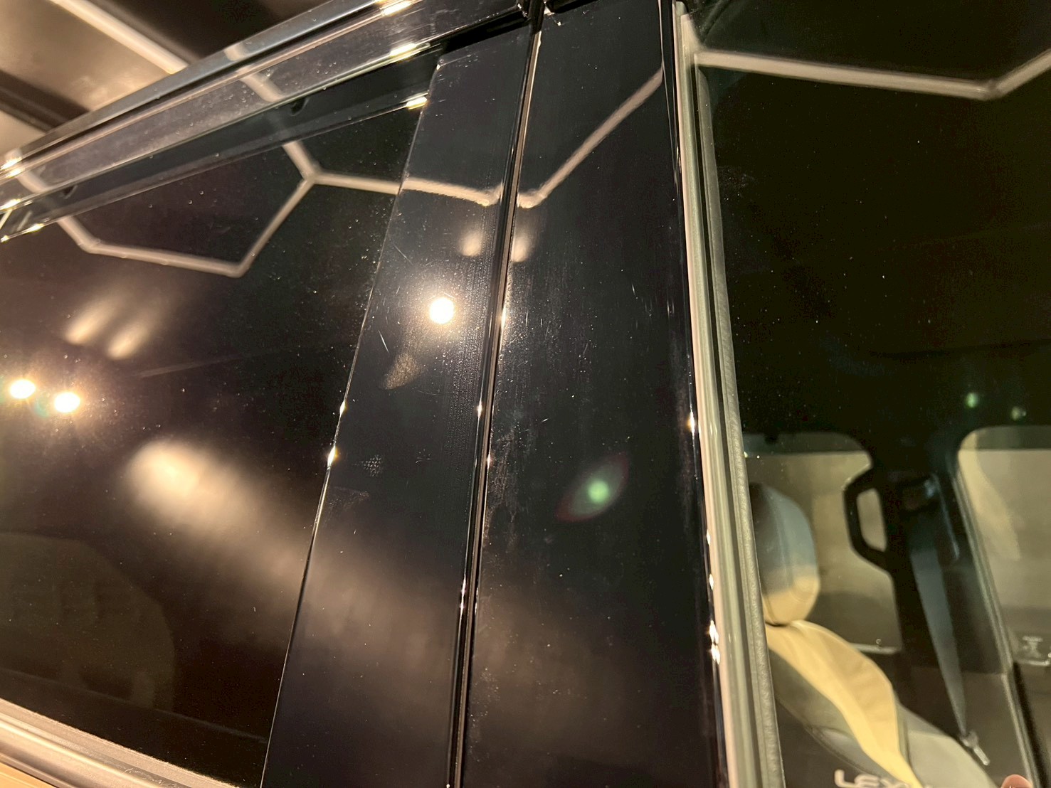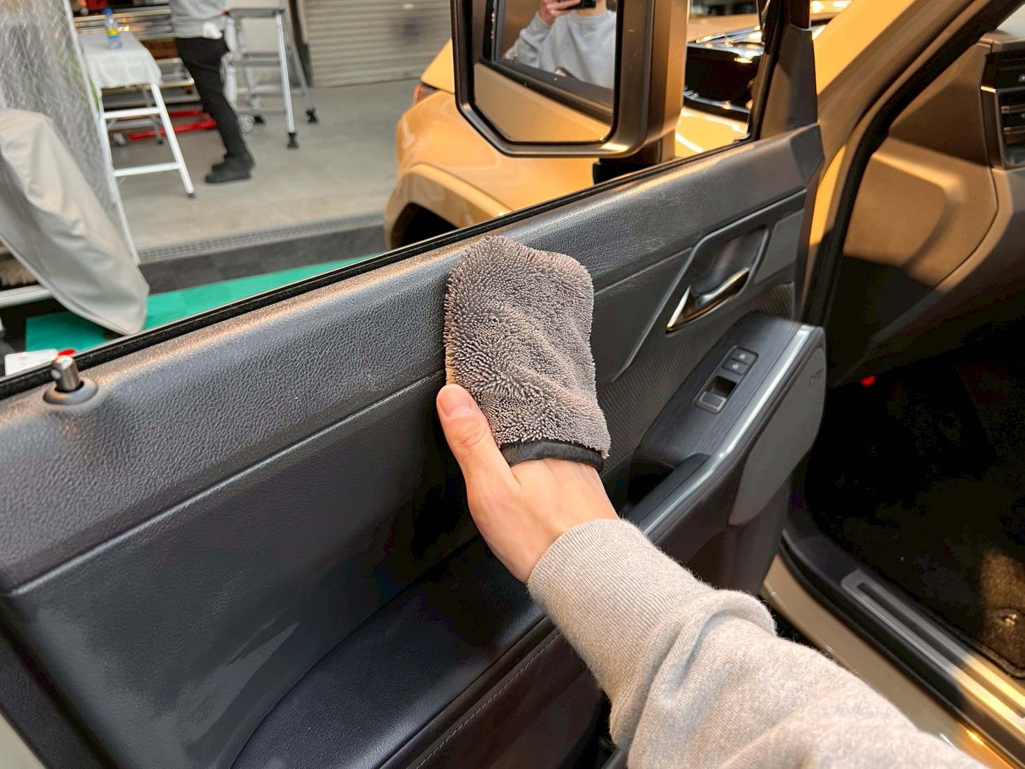 脱脂、仕上げ作業(ドアの内側や隙間の磨き粉の除去、窓清掃、ホイール仕上げ、室内清掃)