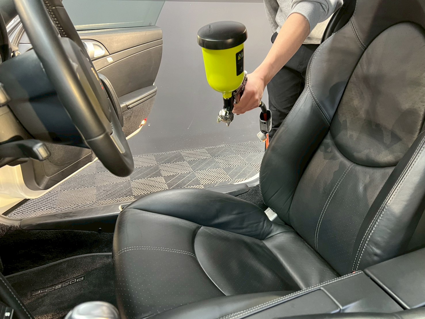 今回のポルシェ 911ターボ type997は、車内の臭いが気になるということで、ナノゾーンコートモビリティとリンサークリーナーでフロアマットクリーニングを施工させていただきました(^^)/