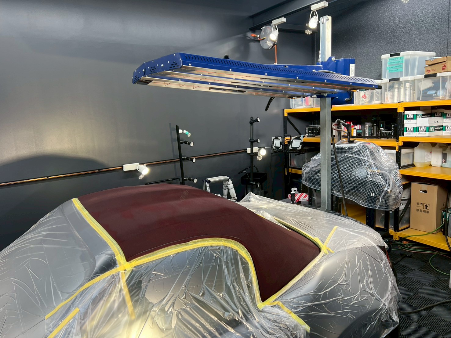 施工環境を整え、照明を利用し、確認しながら塗布していきます。
