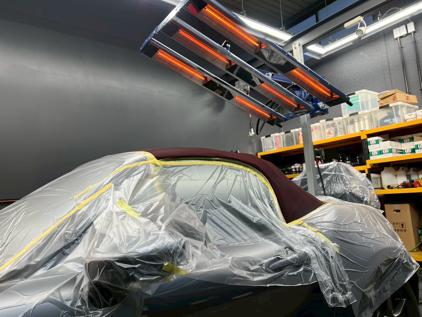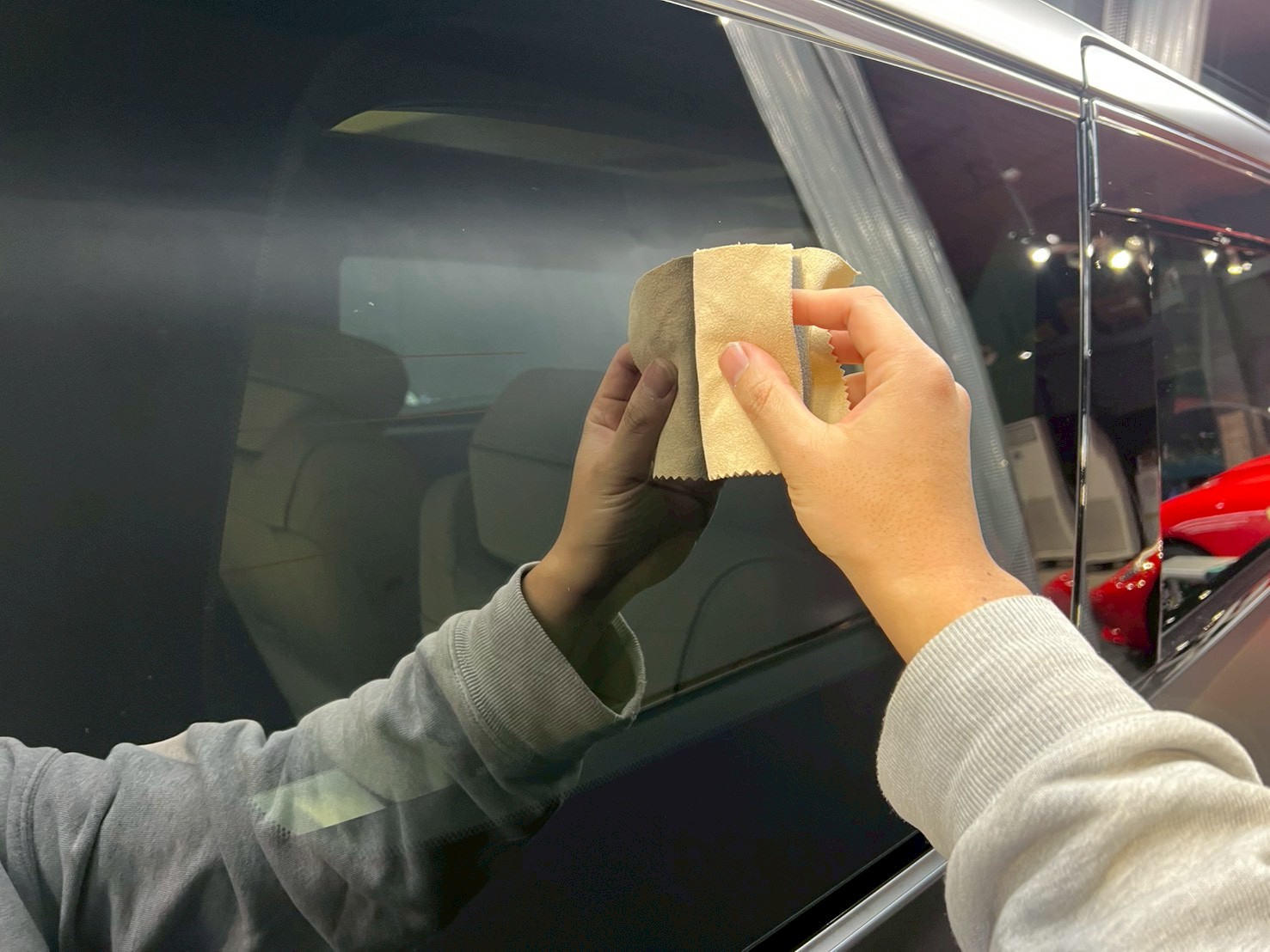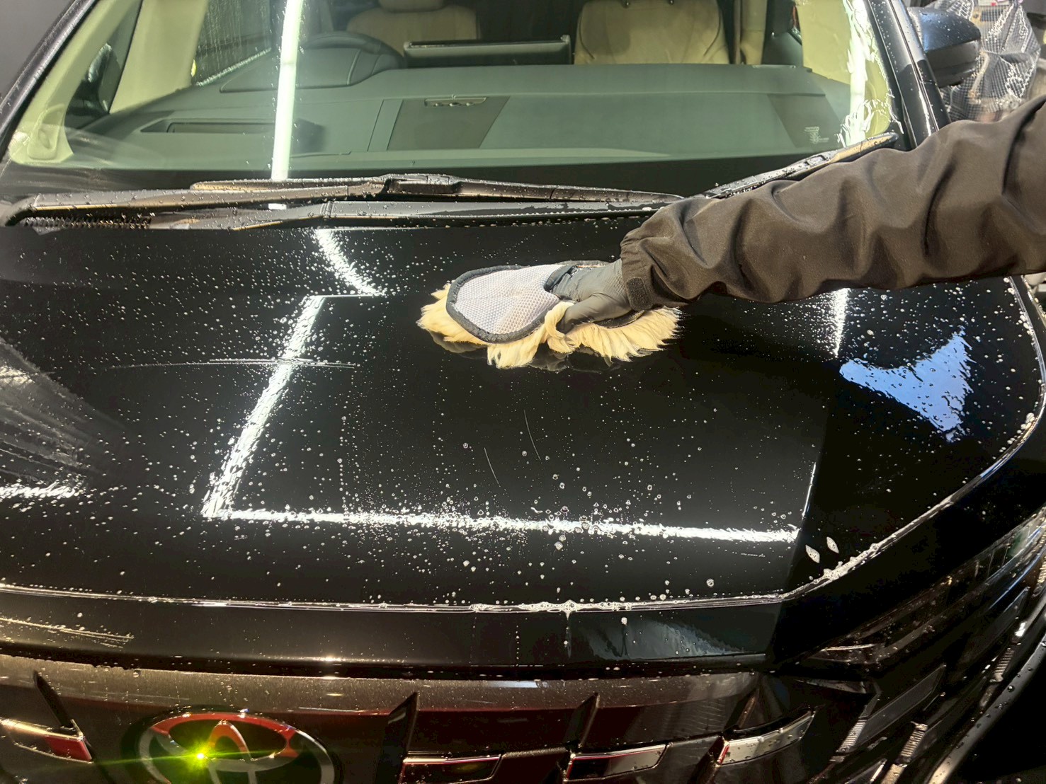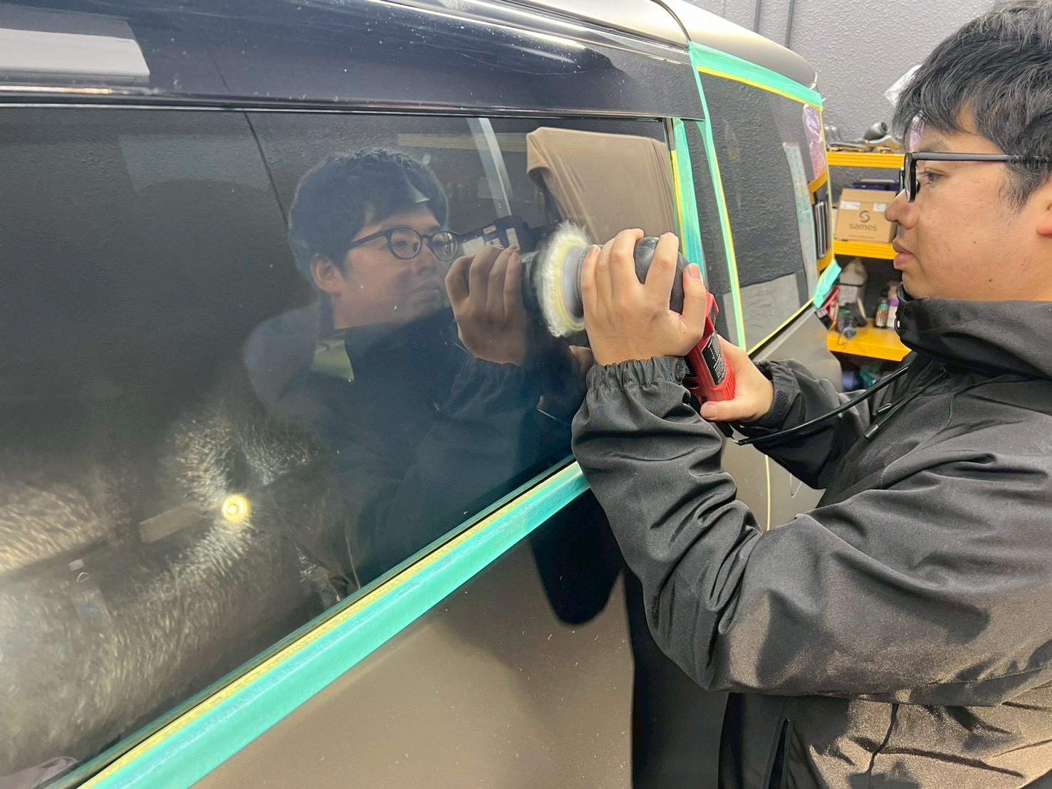 続いては、塗布する際にガラス、ボディにコーティングが付着しないよう、マスキングで保護していきます♩