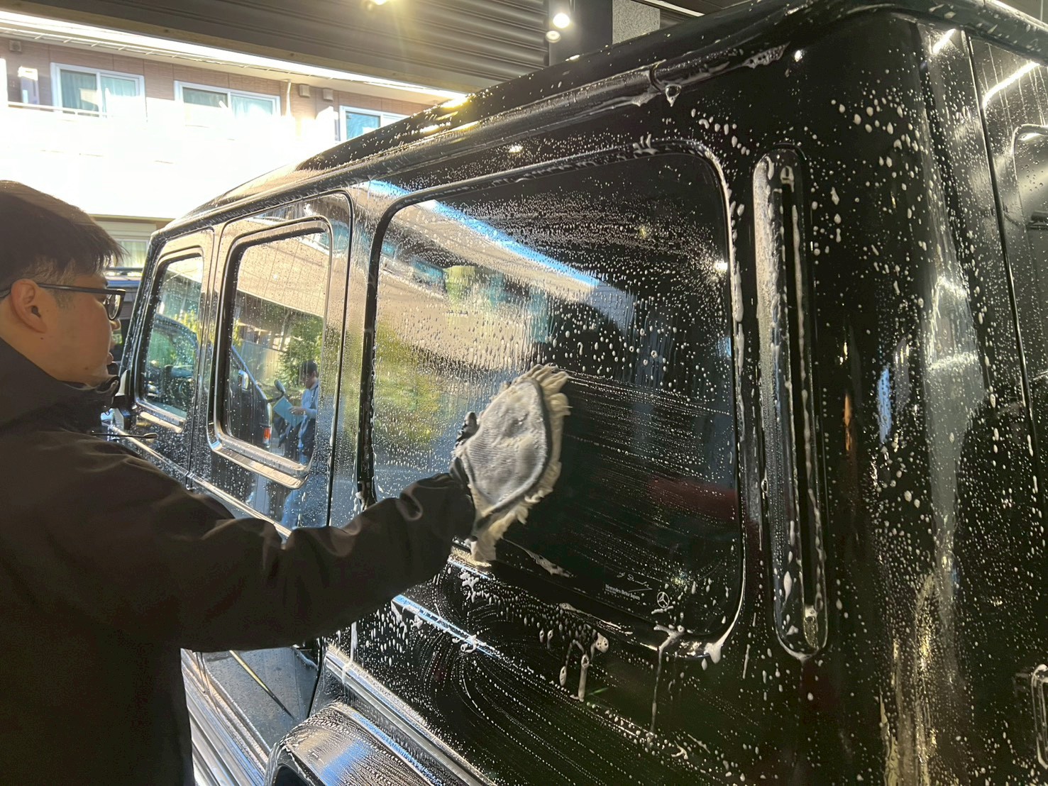 今回は、メルセデスベンツ G400dにスタンダード洗車+全席掃除機+内窓拭きを施工させていただきました!