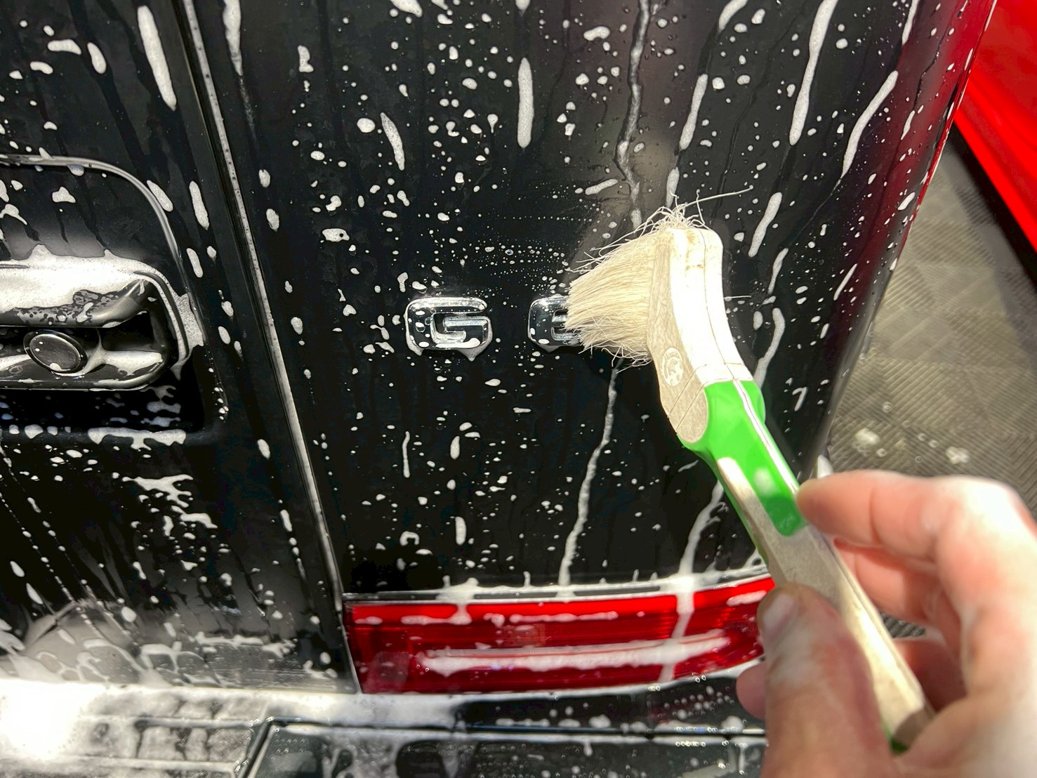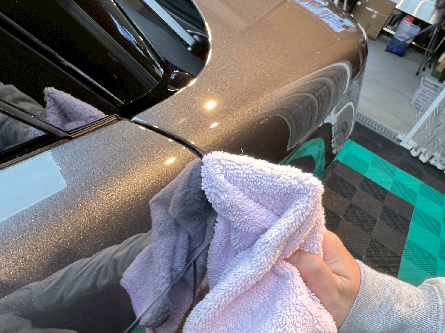 脱脂、仕上げ作業(ドアの内側や隙間の磨き粉の除去、窓清掃、ホイール仕上げ、室内清掃)