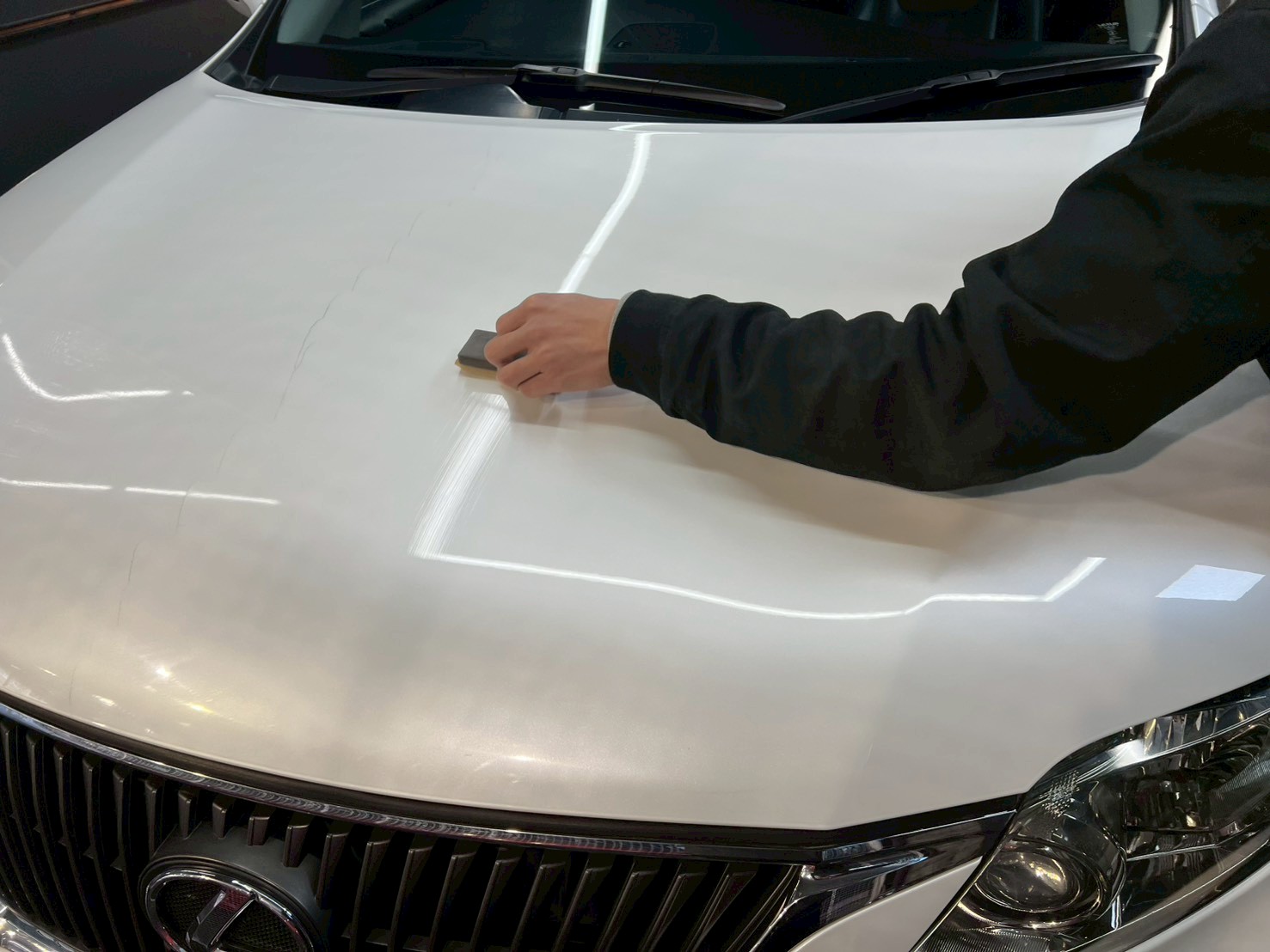 また、ウィンドウコーティングの下処理には、美観復活と同時に、コーティングの定着(耐久性)を良くする目的があります。
