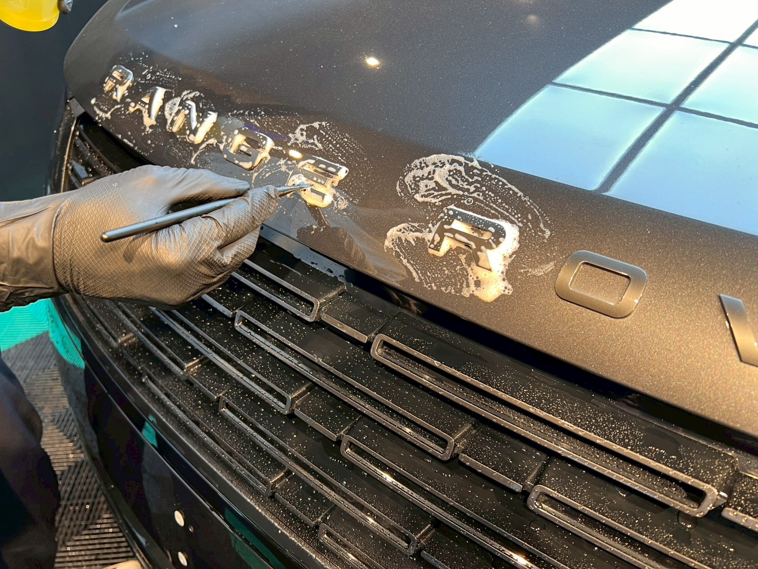 マット塗装は磨き作業が出来ない為、ケミカル剤で下地処理を行っていきます。