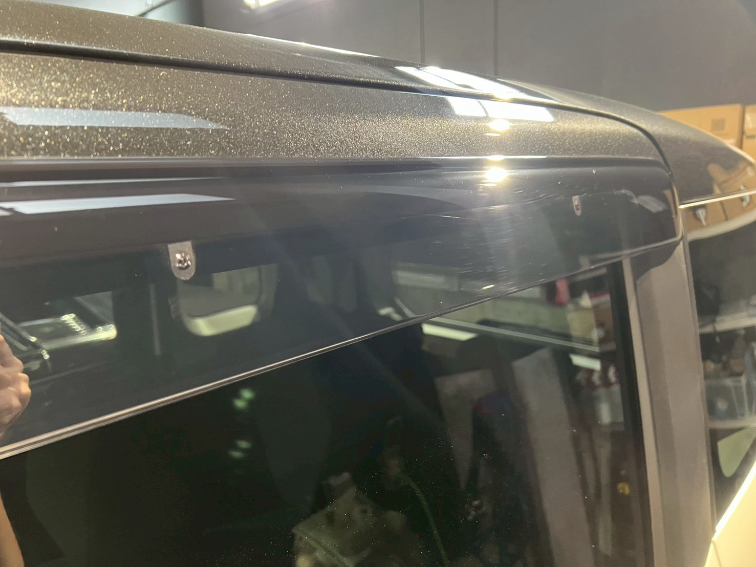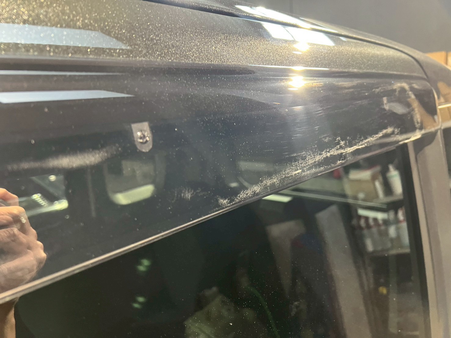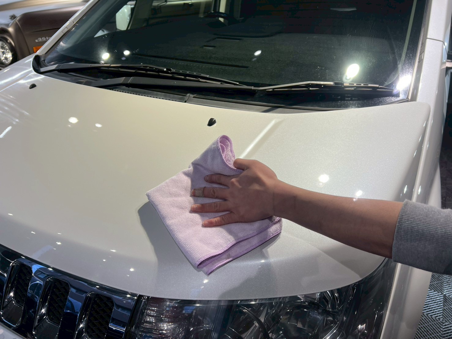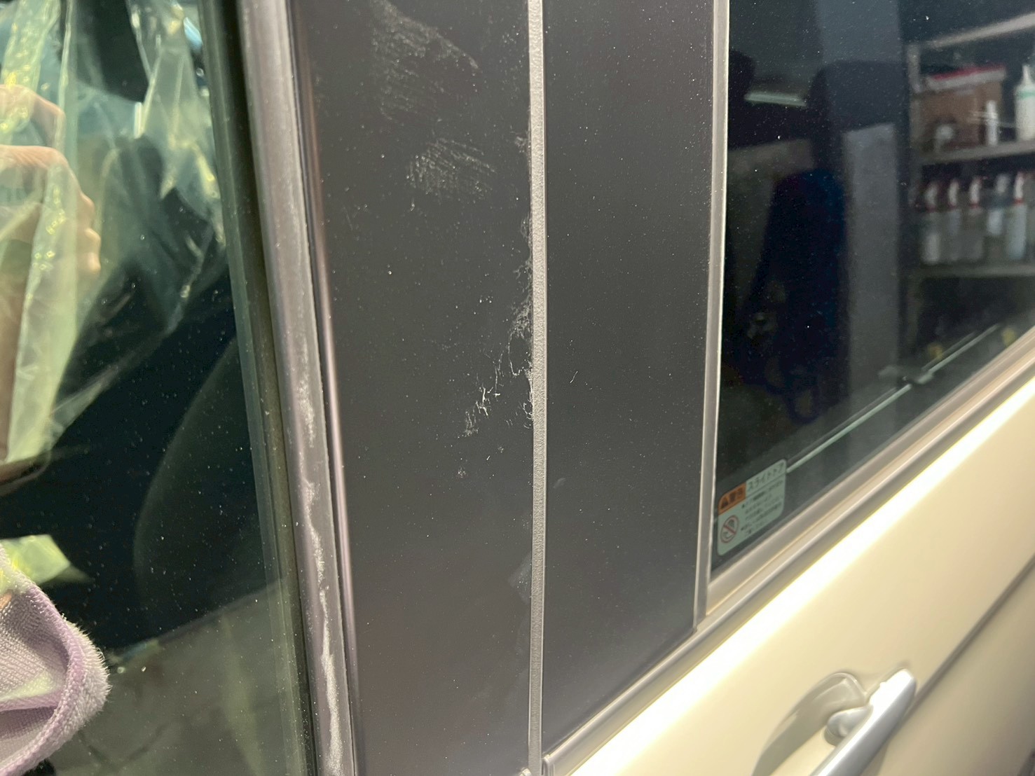 脱脂、仕上げ作業(ドアの内側や隙間の磨き粉の除去、窓清掃、ホイール仕上げ、室内清掃)