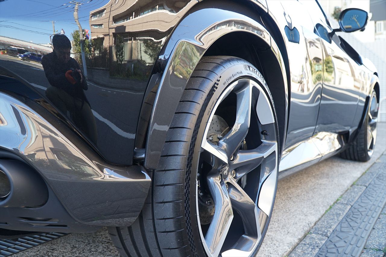 内外装のカーボンパーツを始め、パノラマルーフやリフトシステムなど非常に魅力的なオプション内容の1台。
