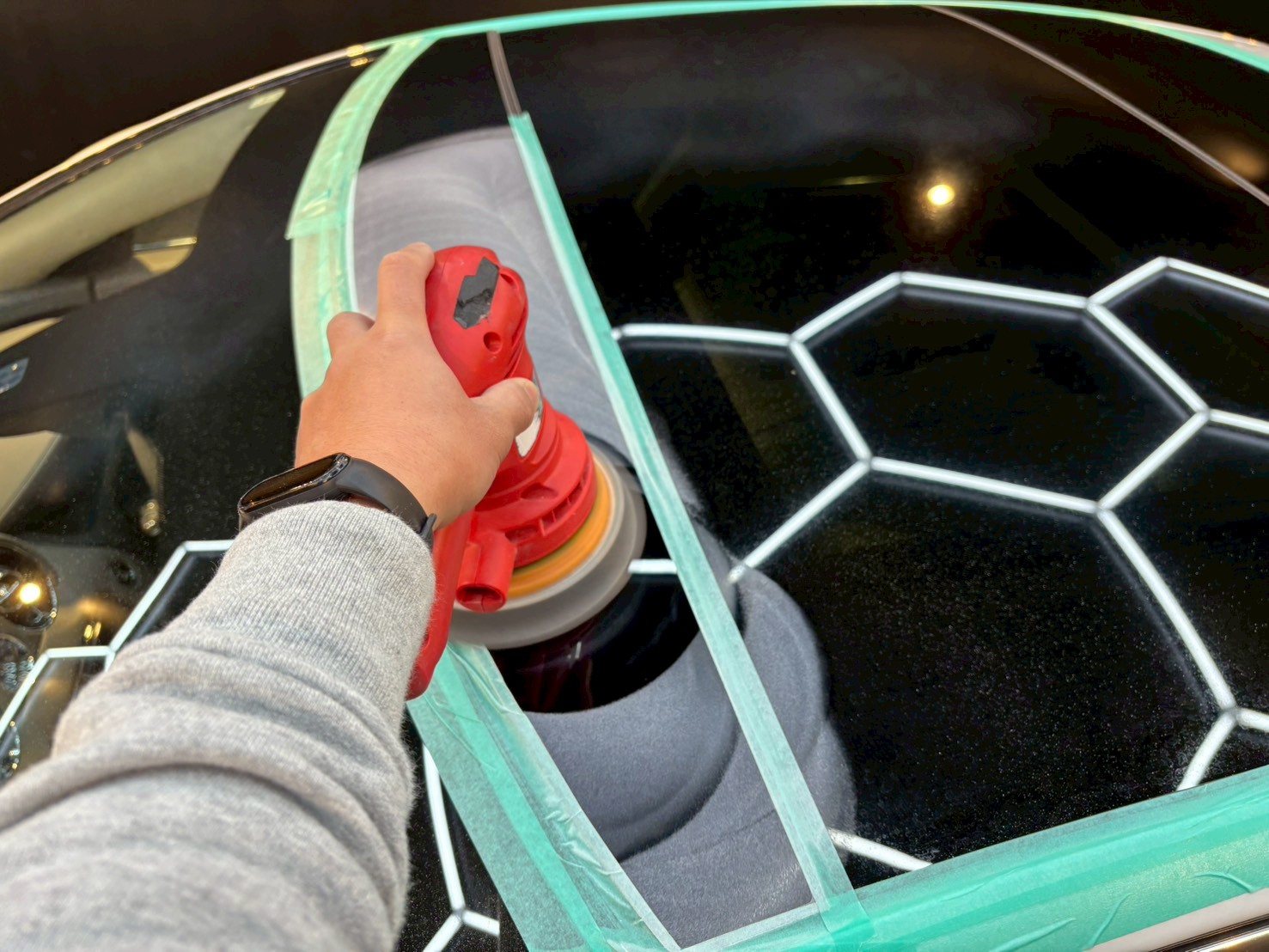 ウィンドウコーティング施工前に、まず行うのがウロコ染み(雨ジミ・水アカ)の除去作業です!