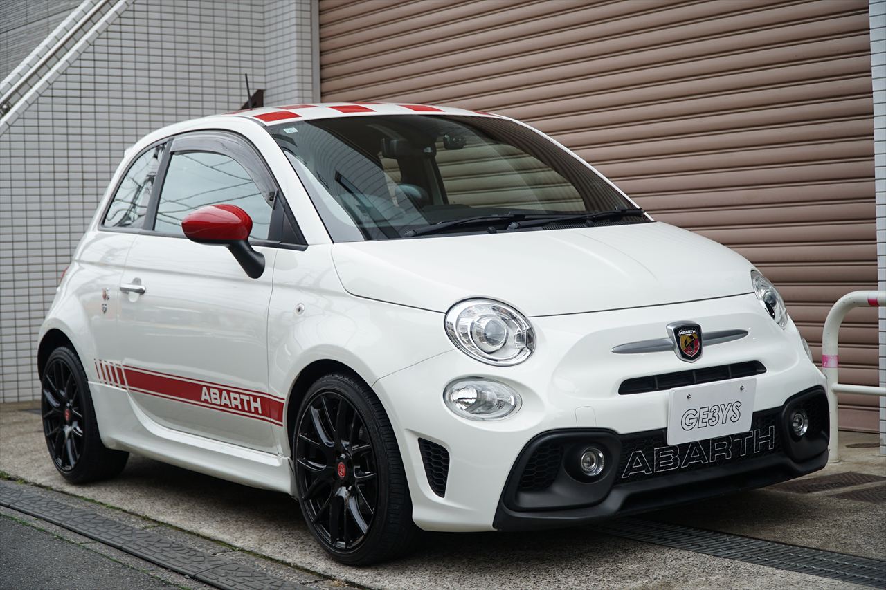 ビアンコガーラのエクステリアカラーにレッドの差し色がお洒落な組み合わせの「アバルト 595」の入庫です!