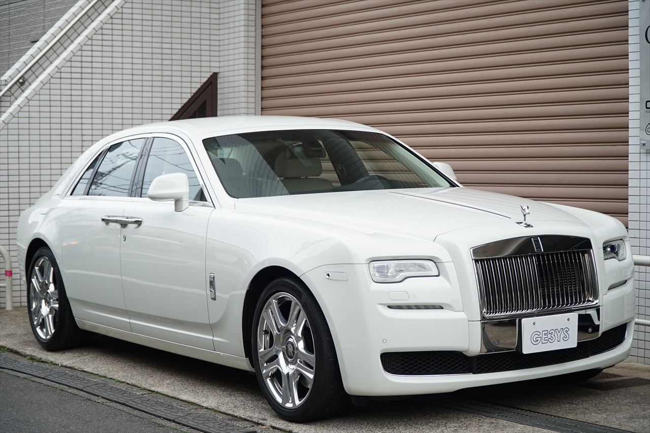 ロールスロイスの中で最もシンプルで純粋なモデル、「ゴースト」を入庫致しました。ホイールの高さとボディの高さは理想的な2対1を実現し、フロントオーバーハングは短く、リアオーバーハング、ホイールベースとボンネットは長くなっており、シンプル且つモダン、クラシックな雰囲気を残しつつ、迫力あるデザインとなっております。搭載されるエンジンは、570馬力を誇る6.6リッターV12ツインターボエンジンにZF製の8ATが組み合わせられます。今回入庫したゴーストはショートボディのSWB(ショートホイールベース)というモデルとなります。ショートホイールベースという名前のボディですが全長は5.4M、ホイールベースは3.3Mとゆとりのあるサイズとなっており、後部座席の広さは抜群で、日本の道路事情にもマッチしております。そしてロールスロイスと言えばコーチドア(観音開き)。外の世界から切り離された自分だけの隠れ家に身をゆだねる、そんな感覚を味わって下さい。2014年10月以降のシリーズⅡのモデルではヘットライトの形状の変化やクロームメッキの新デザインフロントグリルなど様々な箇所が新しいデザインとなってます。エクステリアカラーはイングリッシュホワイト、インテリアカラーもホワイトレザーの高級感あふれる組み合わせです。気になるお客様は是非お早めにお問い合わせください。