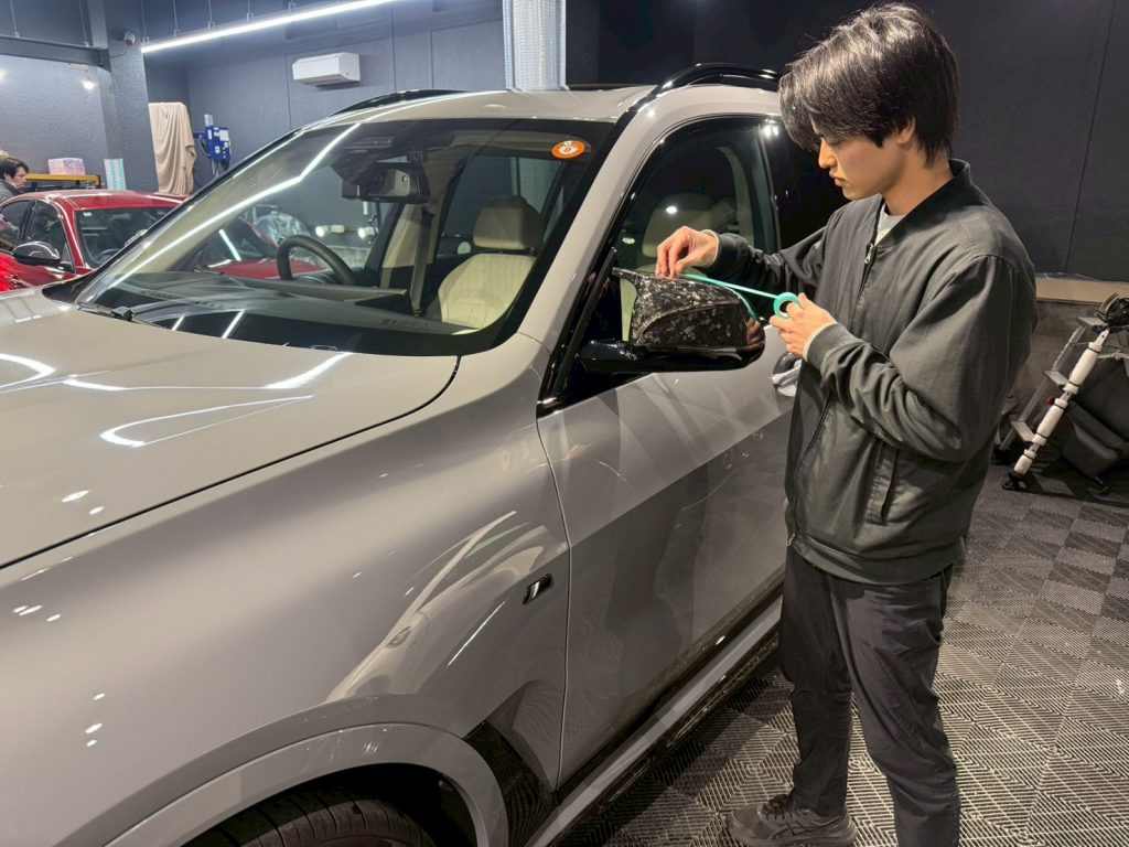 洗車が終わりましたら、施工する箇所の周りをマスキングで保護していきます。