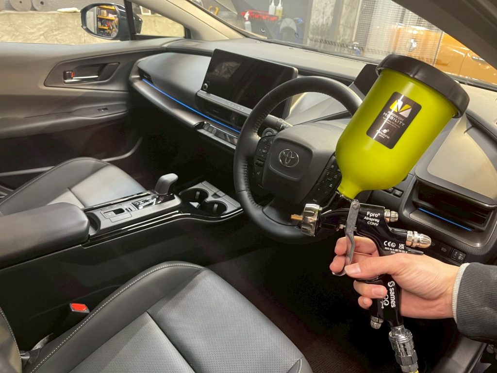 次にナノゾーンコートモビリティ 光触媒コーティングを施工していきます。