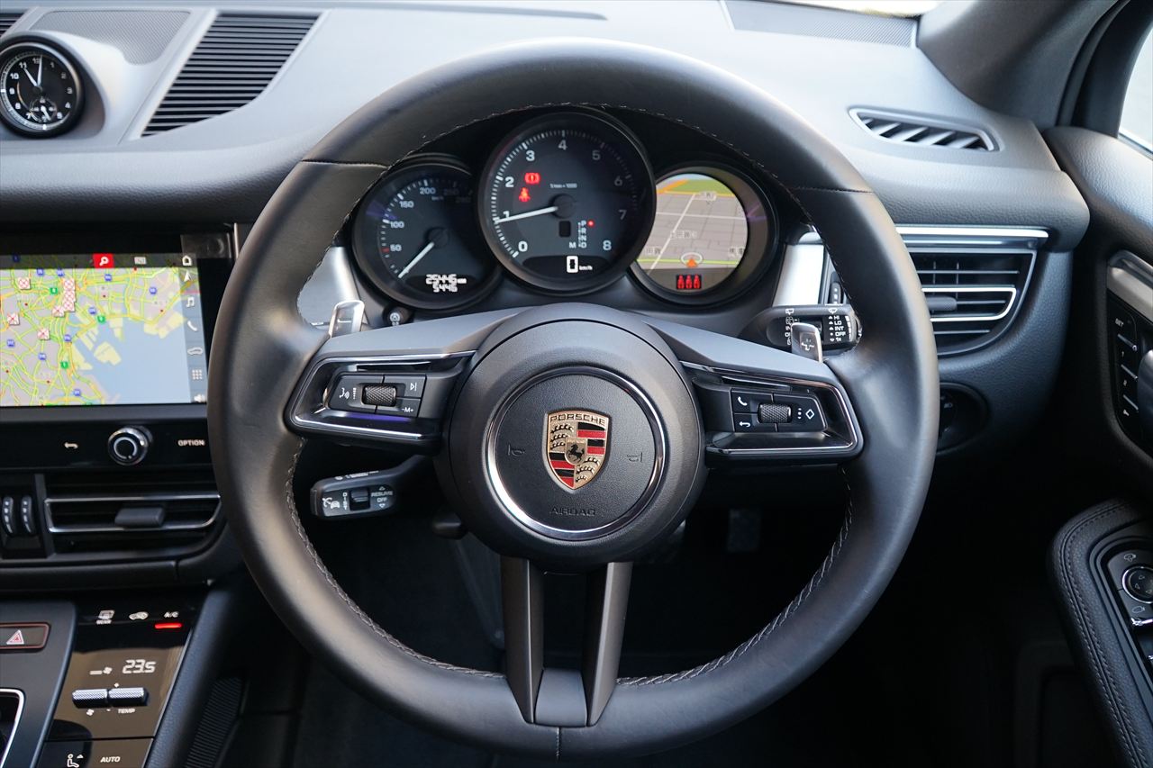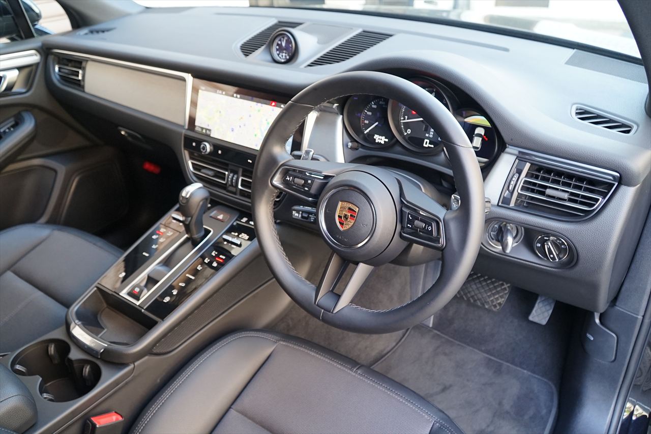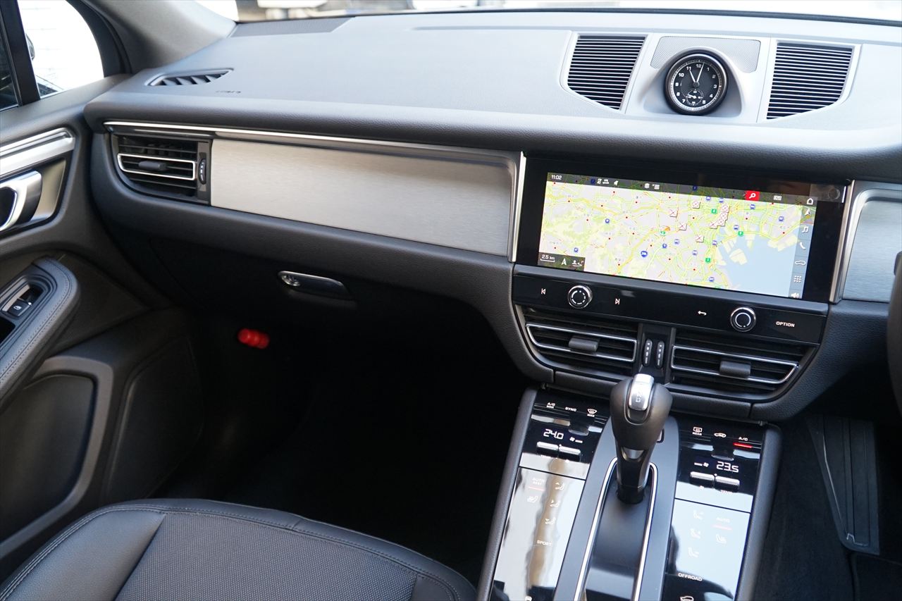 今ではカイエンを凌ぐほどの人気を誇るSUVモデル「ポルシェ マカン」!!スポーツカー譲りの走行性能と日常での扱いやすさを高次元で両立した、ポルシェのベストセラーモデルです。今回入庫した車両は、2021年7月にマイナーチェンジを受けた後期型モデルとなります!!後期型ではフロント・リアバンパーのデザインが一新され、ワイド感とスポーティさがさらに向上。LEDヘッドランプ(PDLS付)が標準装備となり、夜間視認性と高級感も高まりました。インテリアではセンターコンソールがタッチパネル式へと刷新され、より現代的で洗練された空間へと進化しております。搭載されるエンジンは2.0L直列4気筒ターボエンジン。最高出力265馬力/最大トルク40.8Kgmを発生し、7速PDKとの組み合わせによりポルシェらしい軽快でレスポンスの良い走りを実現。街乗りから高速走行までストレスのないスムーズな加速フィールをお楽しみいただけます。エクステリアカラーは精悍なブラック。プライバシーガラスが装備され、引き締まった印象を与えます。インテリアもブラックで統一され、ブラッシュドアルミニウムが上質なアクセントを演出。フロントには8way電動コンフォートシートを装備し、快適なドライビングポジションを確保します。また、アダプティブクルーズコントロールやサラウンドビューカメラなど先進の運転支援システムも標準装備。日常使いにおける安全性・快適性もしっかりと確保されています。ワンオーナーで新車保証付き。コンディションも良好な後期モデルの1台となります!お問い合わせが重なることも予想されますので、ぜひお早めにご検討ください。