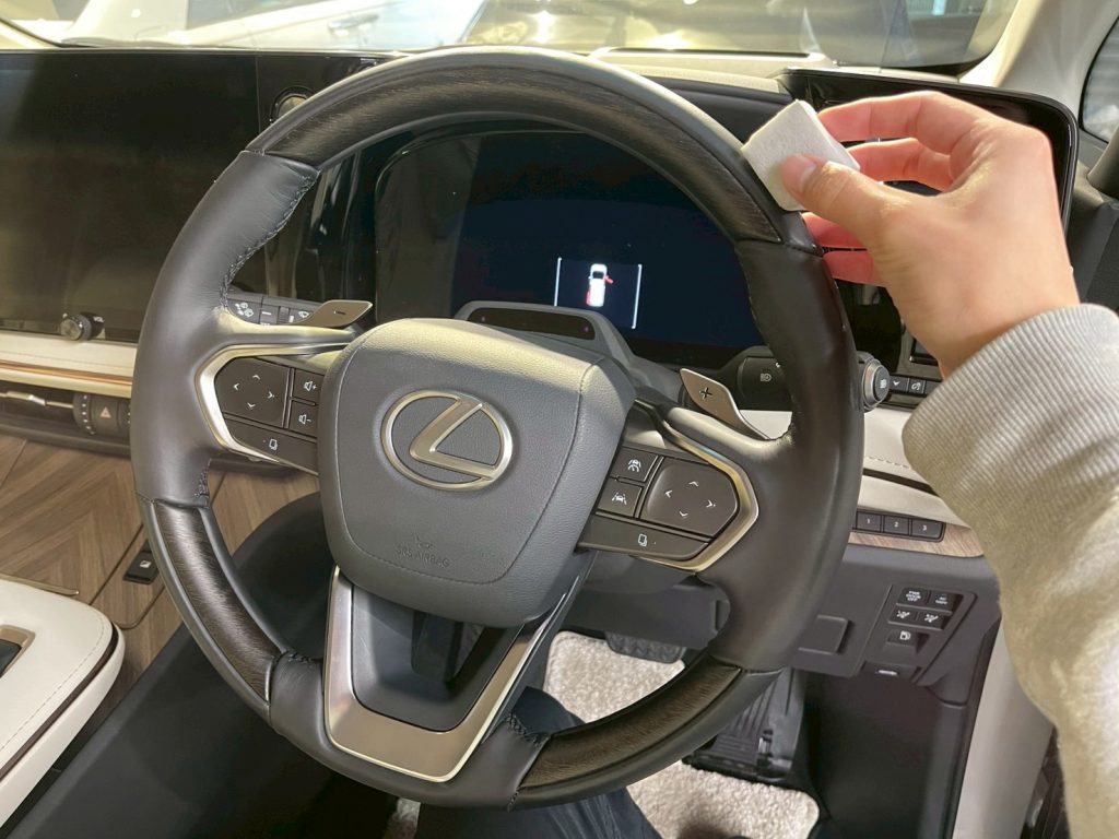 給油口やドアを開けたところなど、徹底的にクレンジングします。