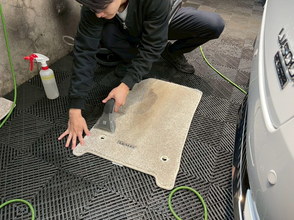 次に、リンサークリーナーでフロアマットをクリーニングしていきます♪