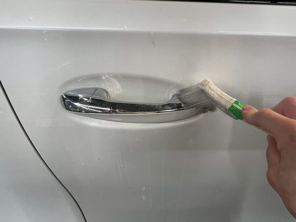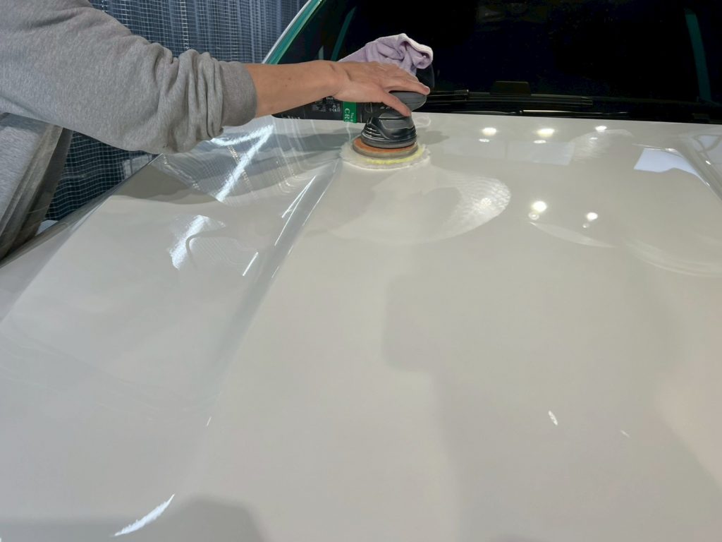 脱脂、仕上げ作業(ドアの内側や隙間の磨き粉の除去、窓清掃、ホイール仕上げ、室内清掃)