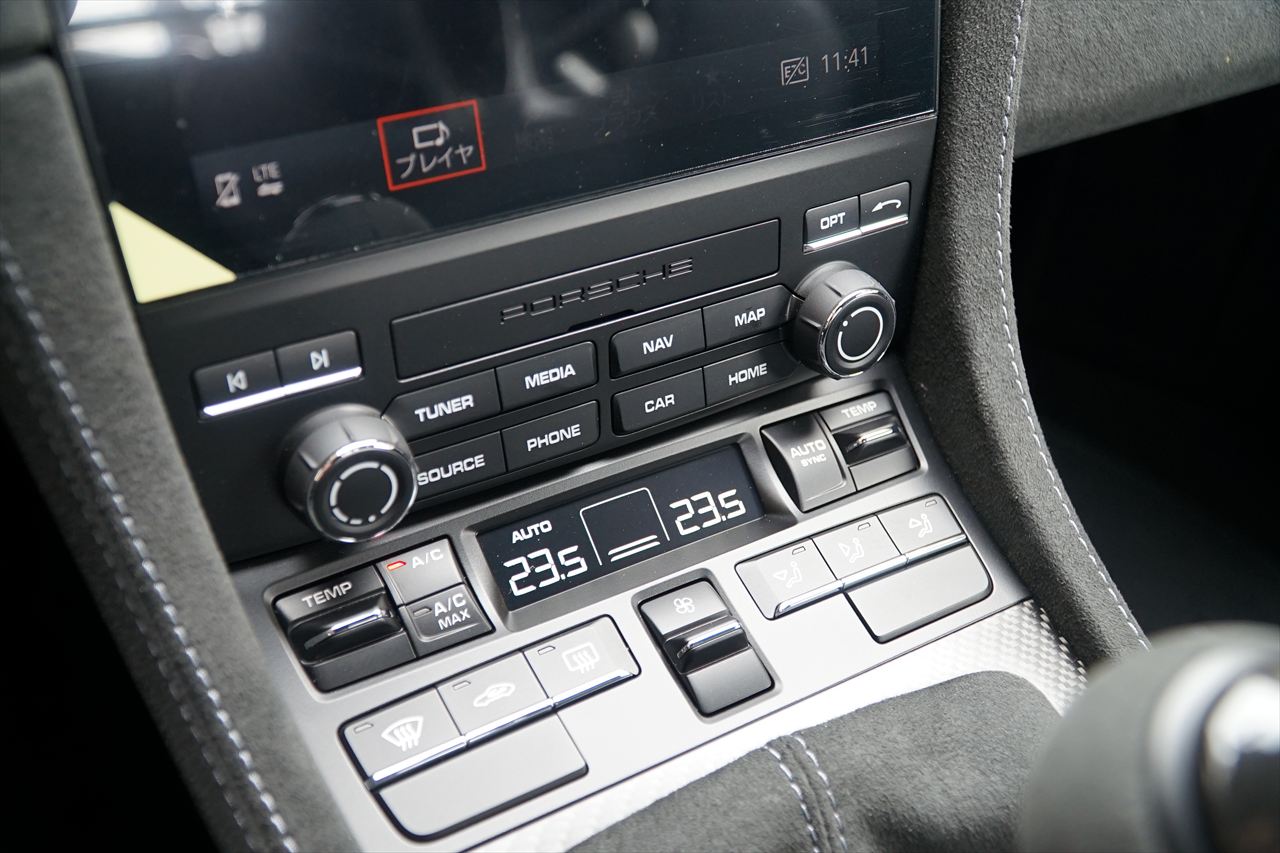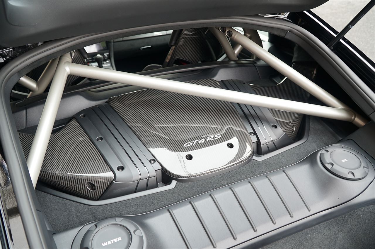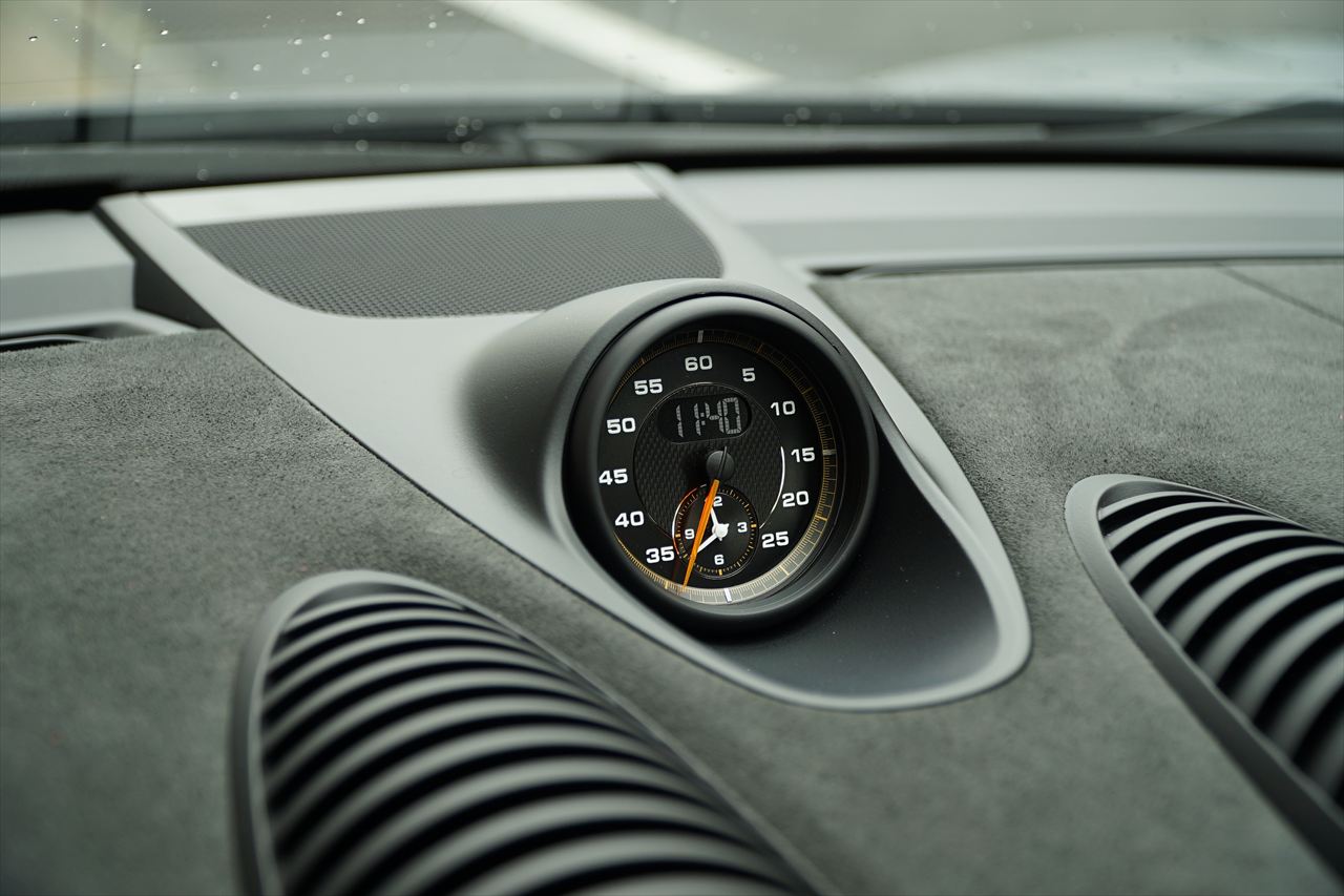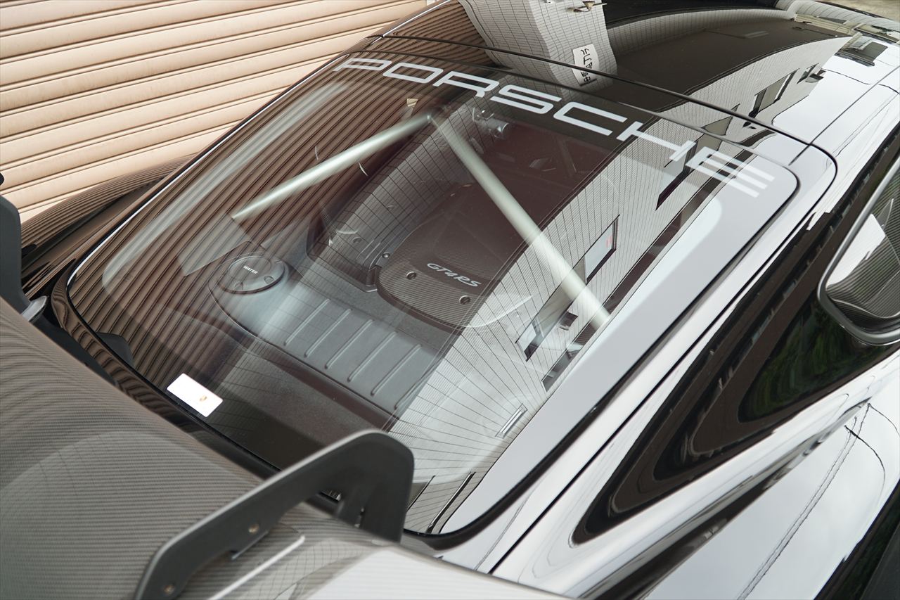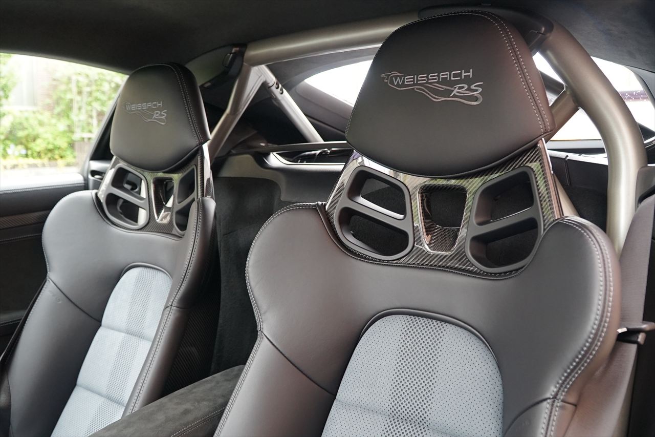 ヴァイザッハパッケージ、フロントリフト、PCCB、純正20AW、スポーツクロノ、BOSEなど圧巻のオプションとなっております。さらにロールバーをはじめ、軽量化・剛性強化を追求したパッケージ内容により、サーキット走行からワインディングまで存分にお楽しみいただけます。