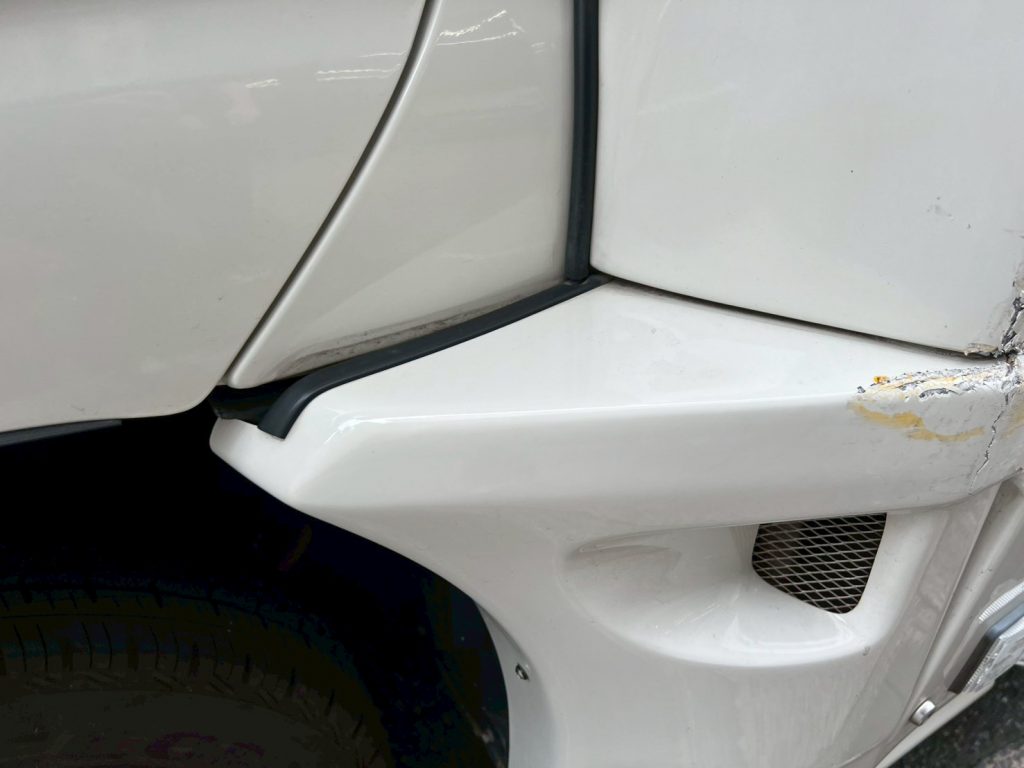 今回は左ドア部分とサイドパネル部分の鈑金修理を致しました。