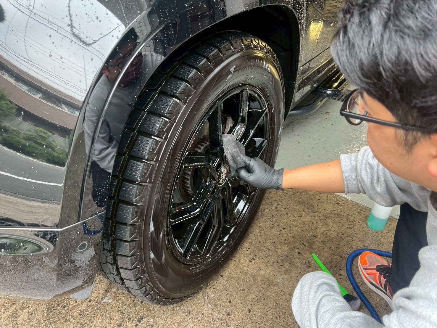 ドアを開けたところ、ホイール(表面のみ)の拭き上げも行います。