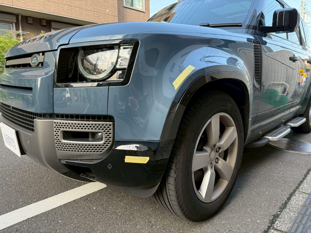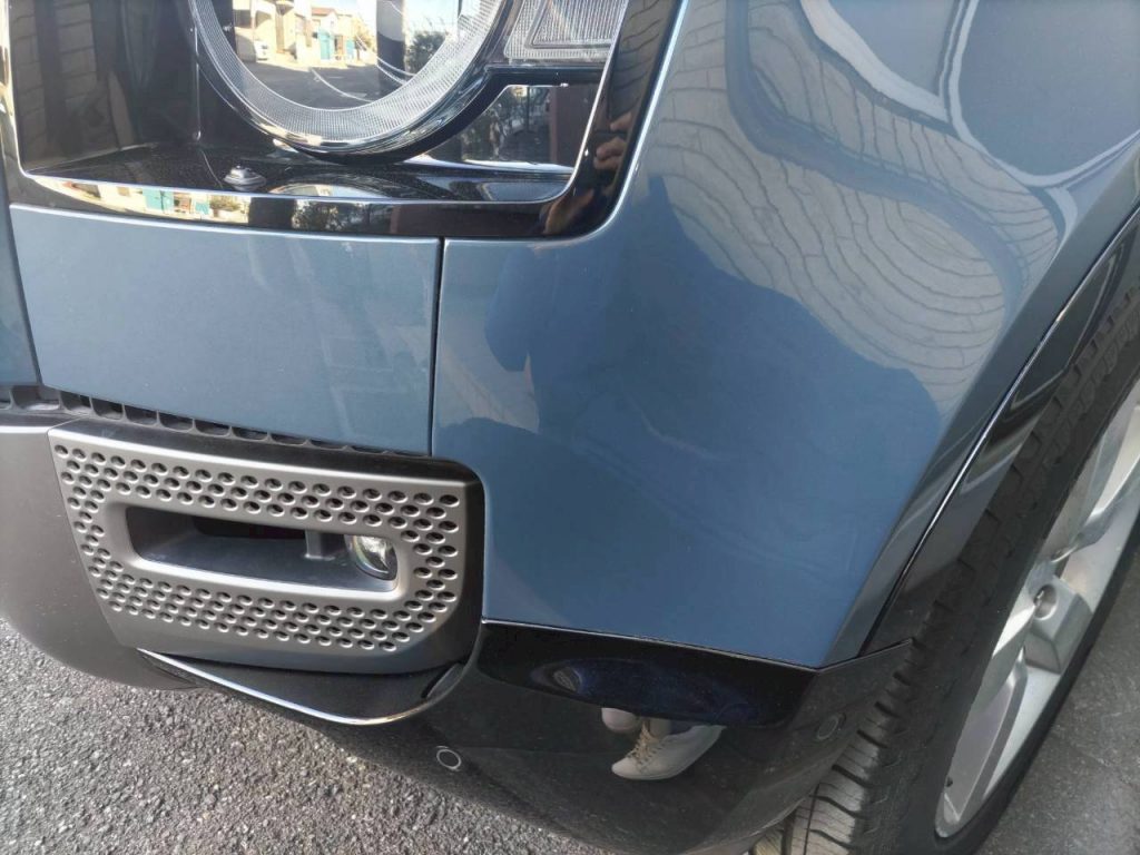 今回はランドローバー ディフェンダー110の傷ついた左フロントバンパーと右リアフェンダーの鈑金修理を致しました。