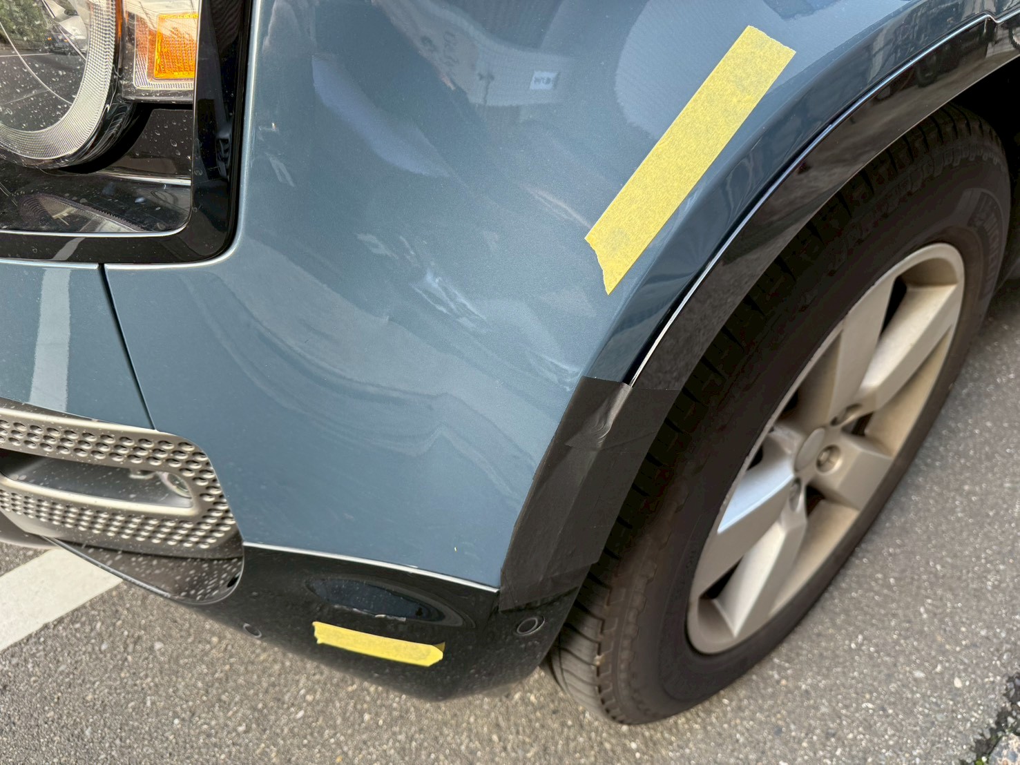 テープが貼ってある部分に飛び石傷がついているのがお分かりでしょうか?!この傷を何事も無かったかのように綺麗にしたいと思います!!