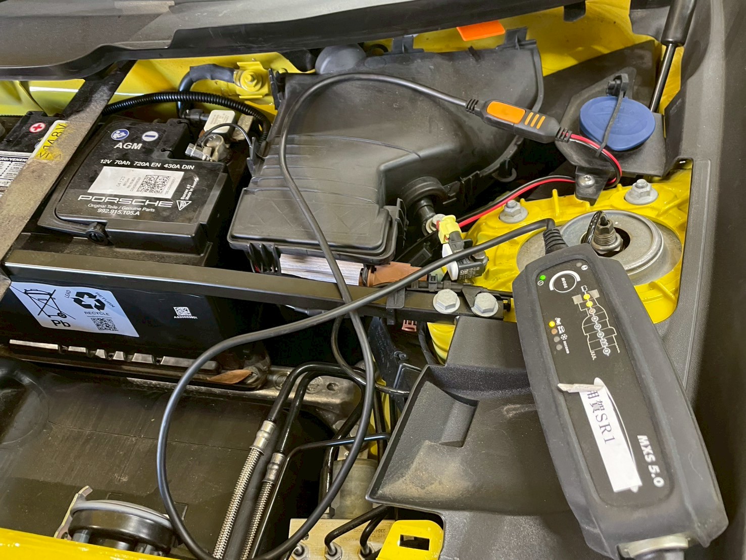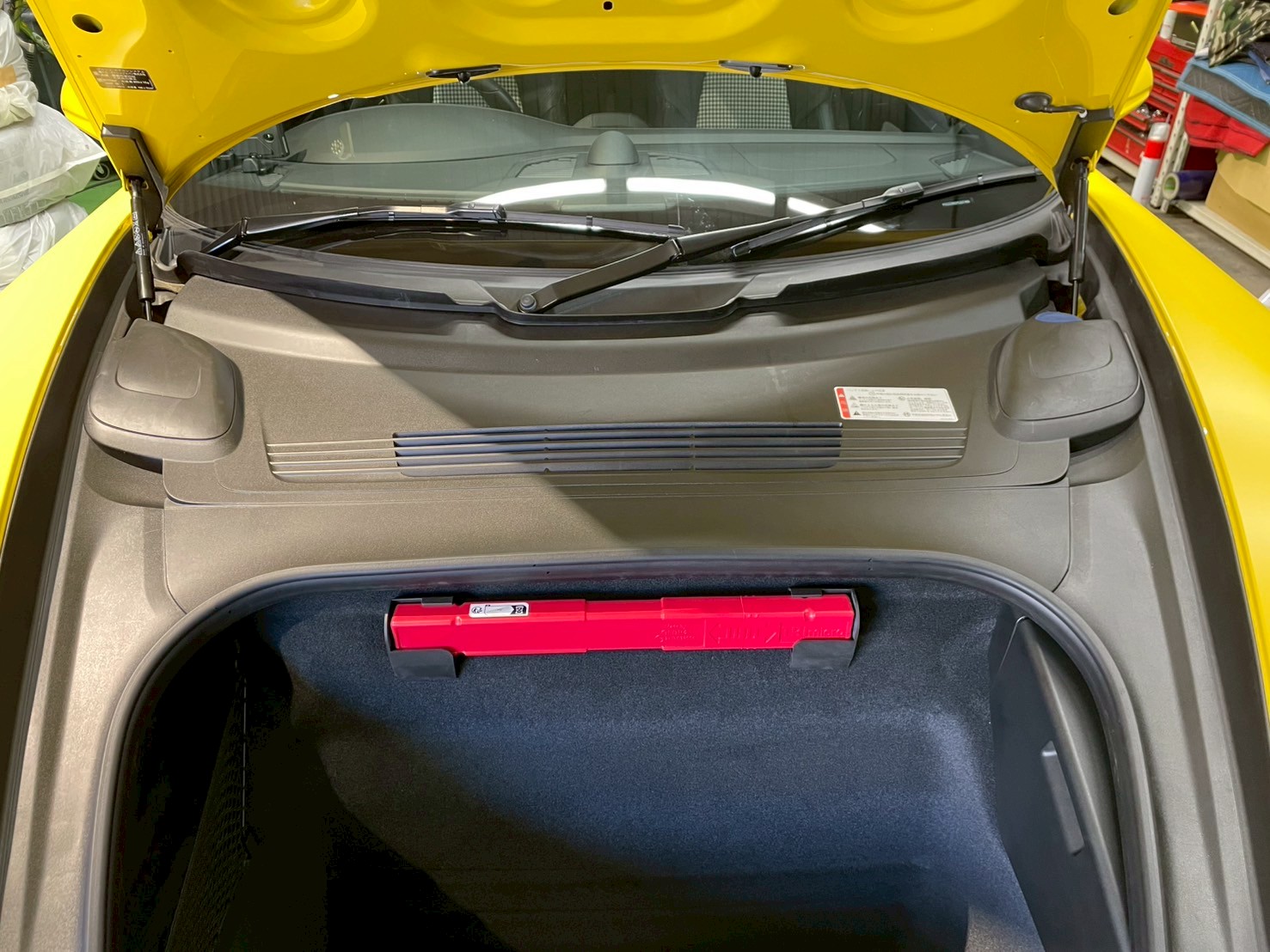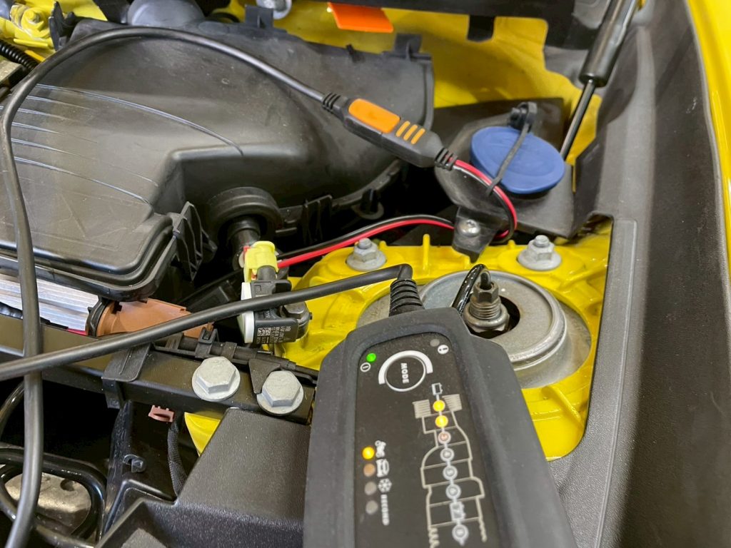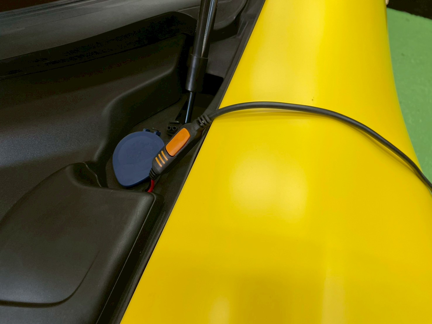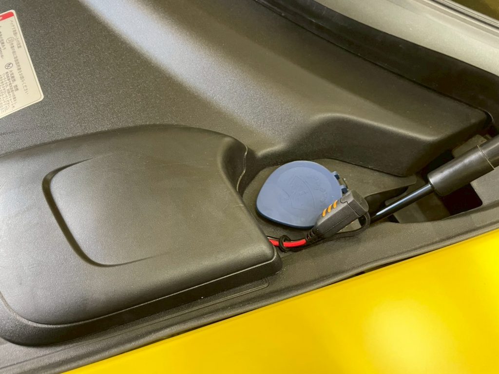 今回はお客様のご要望通りにボンネットを開けたら直ぐ充電出来るように