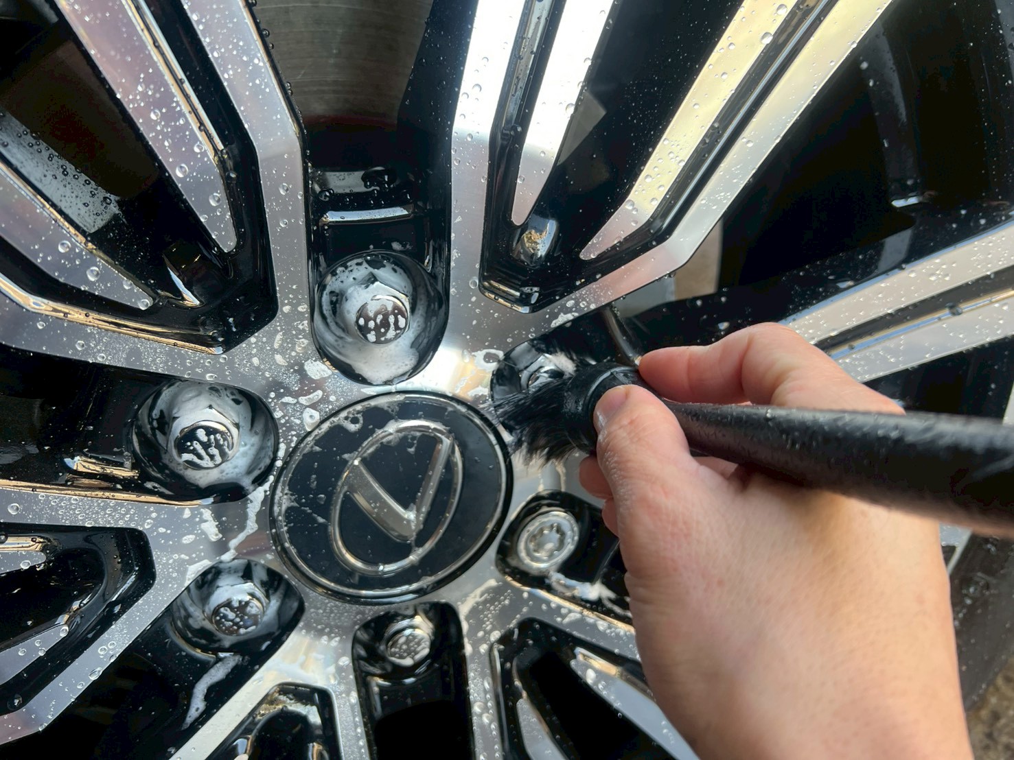 細かな部分も洗浄していき、ボディ洗車に入ります(^^)
