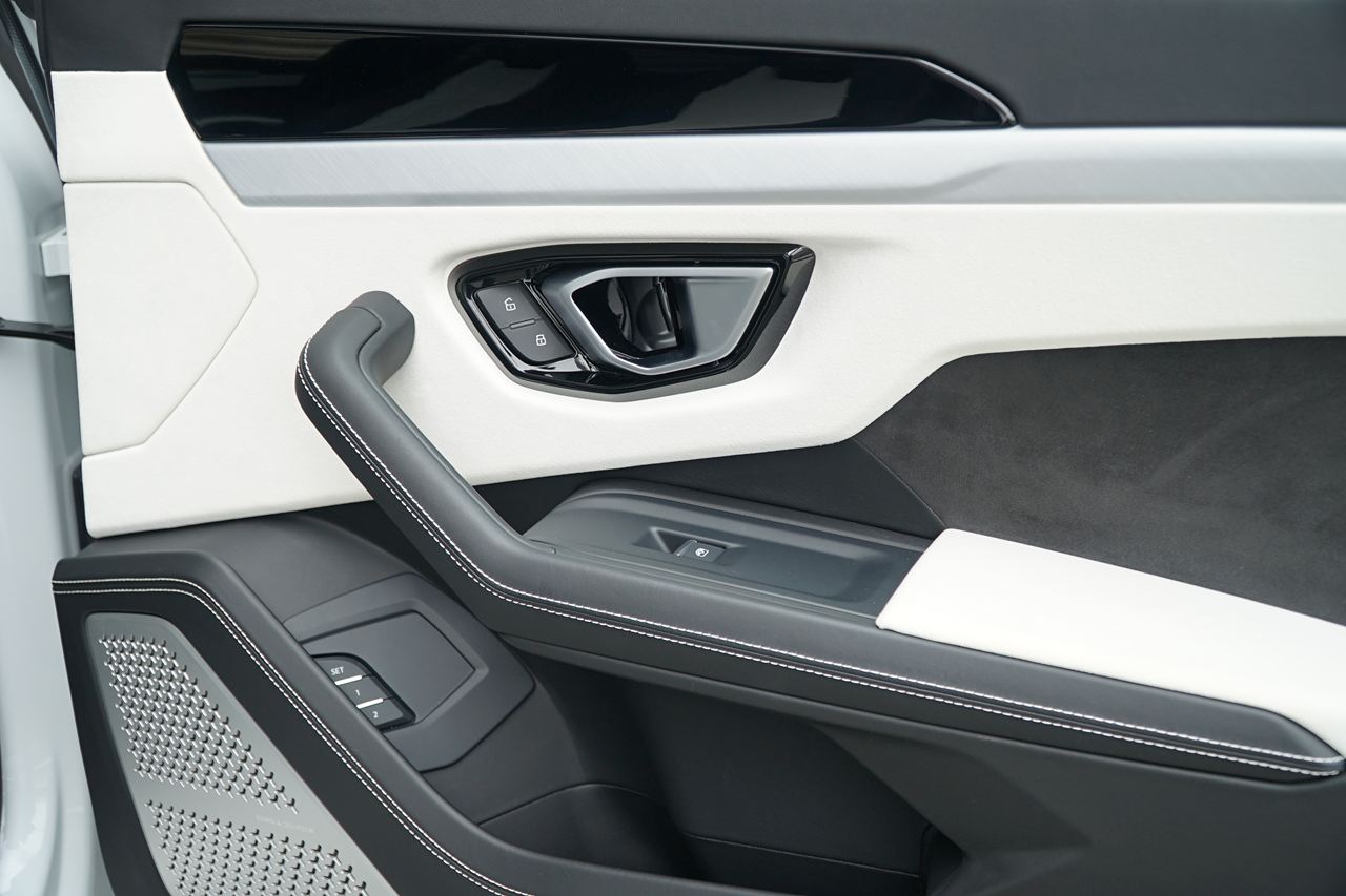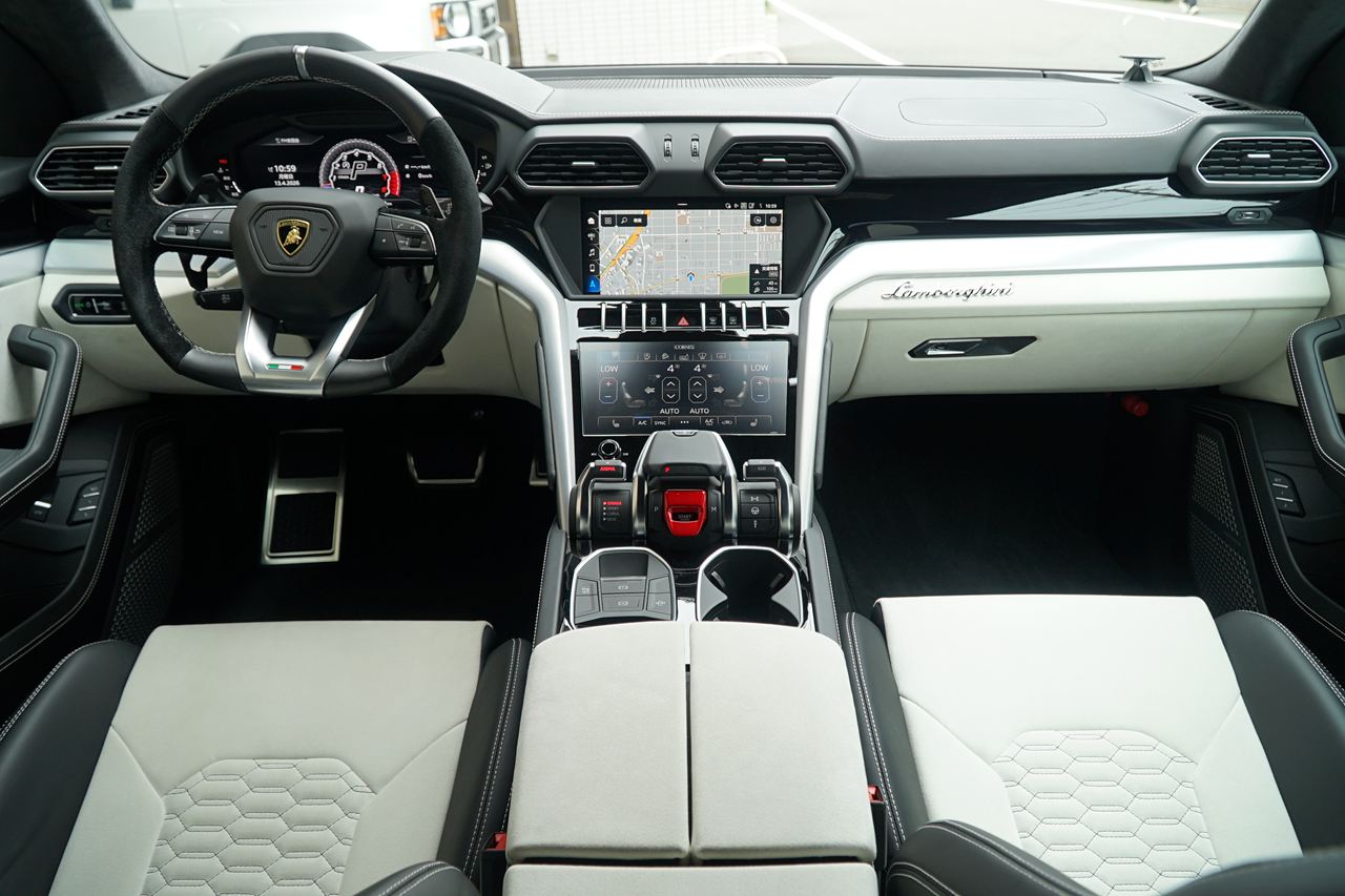 スポーツ性、快適性、ラグジュアリー、ハイテク製を兼ね備た上質な空間となっております!!また、ドアハンドルやエアベントの六角形や、ステアリングホイールの[Y]テクスチャ―などランボルギーニDNAを当然受け継いでおります!!
