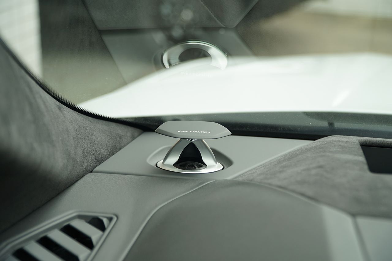 ビアンコイカロスのボディにハイグロスブラックパッケージを組み合わせ、精悍でスタイリッシュな仕上がりです。Bang&Olufsenサウンドや23インチAWなど総額327万円相当のオプションを装備した魅力的な一台です。