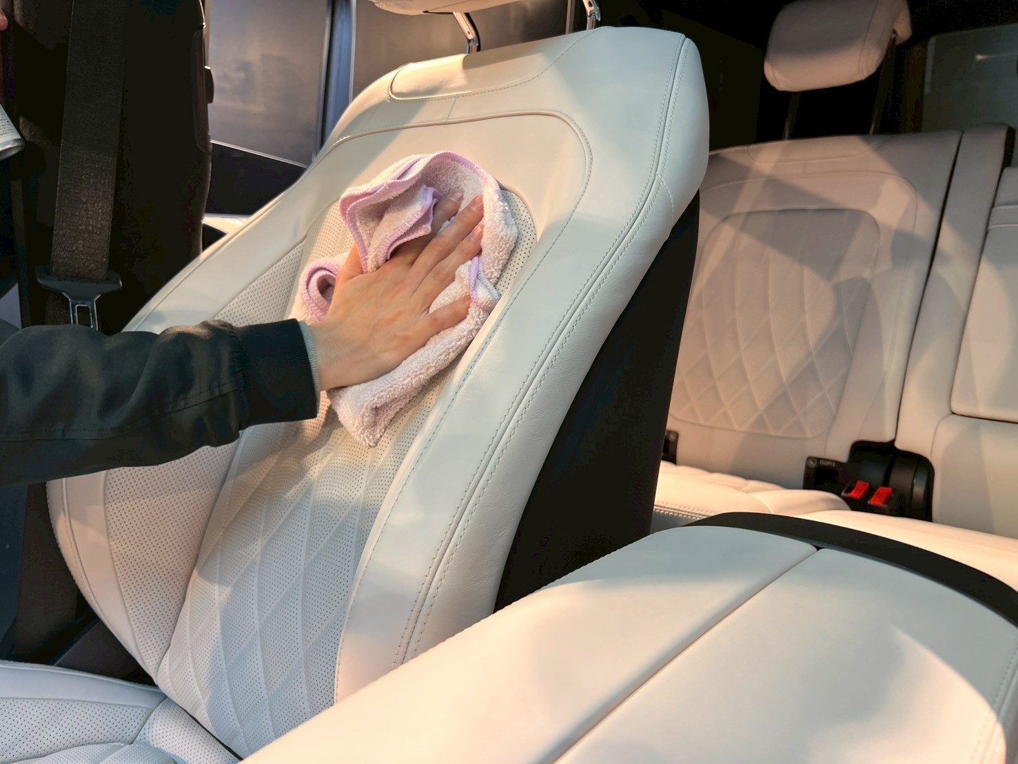脱脂、仕上げ作業(ドアの内側や隙間の磨き粉の除去、窓清掃、ホイール仕上げ、室内清掃)